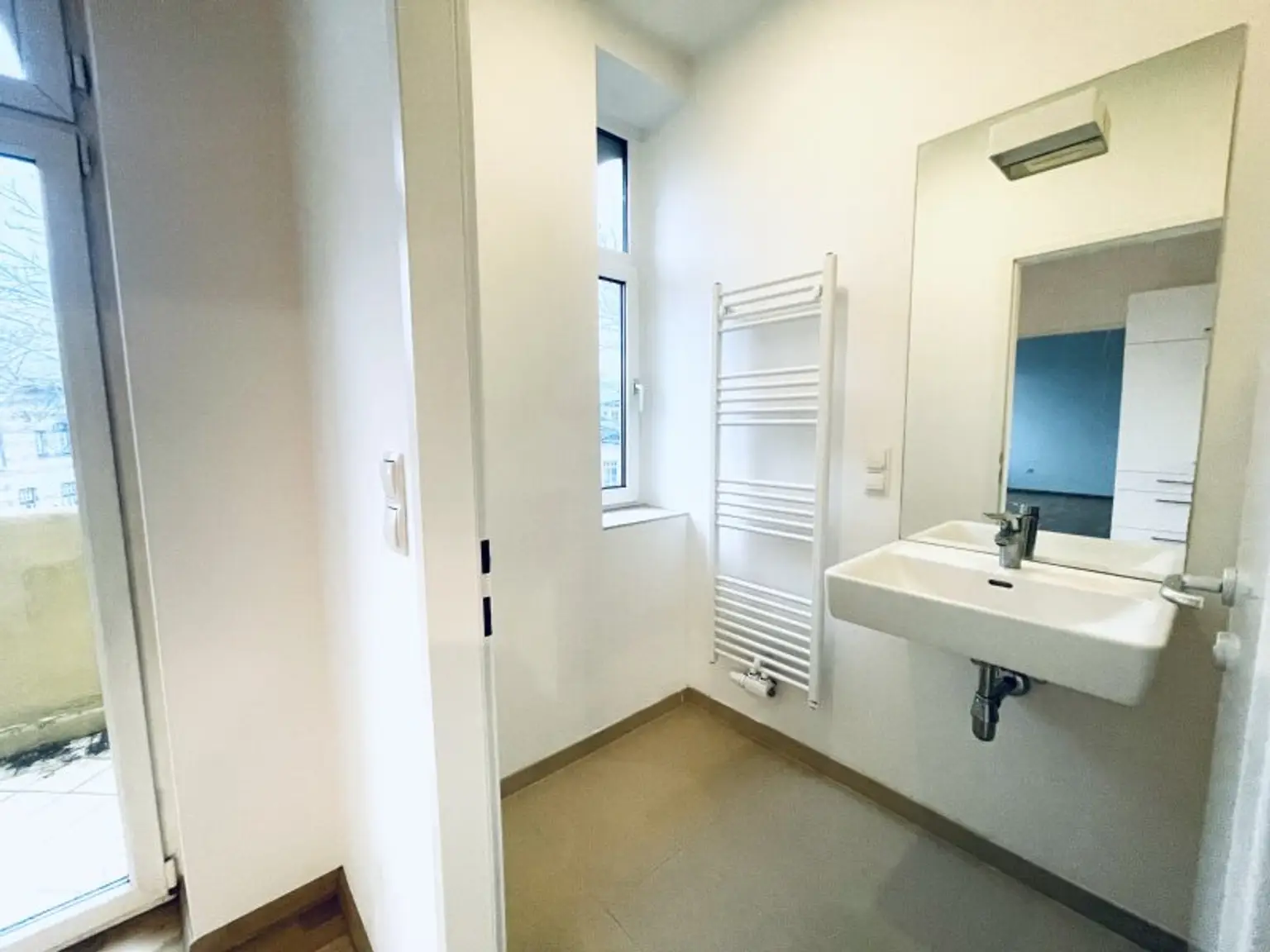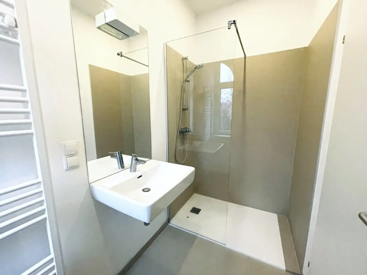 * Badezimmer mit Dusche, separate Toilette, ein Vorraum mit Garderobenmöglichkeit sowie ein Abstellraum mit Waschmaschinenanschluss ergänzen das Raumangebot.