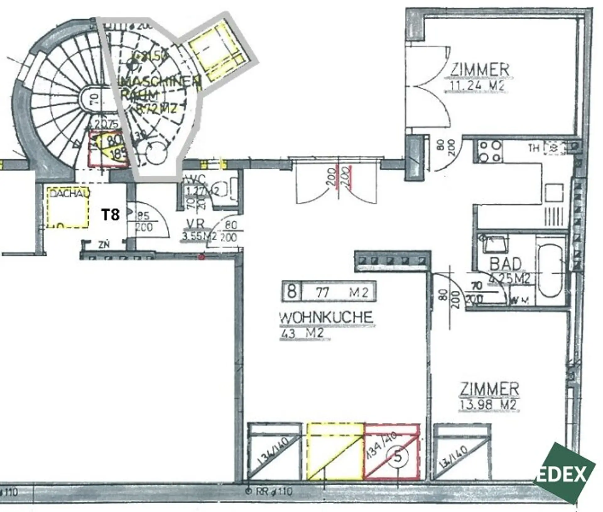 Die ca. 77 m² große Wohnung liegt im Dachgeschoß eines gepflegten Altbaus im 9. Wiener Gemeindebezirk, nur wenige Gehminuten von der Wiener Innenstadt und dem Alten AKH entfernt. Die Wohnung verfügt über einen Vorraum, ein Badezimmer mit Badewanne und Waschmaschinen-Anschluss, eine separate Toilette, einem Schlafzimmer mit eingebauten Kleiderschrank und einem mit einem französischen Balkon und toller Aussicht, sowie ein Wohnzimmer und einer separaten Küche mit Backrohr, Cerankochfeld, Geschirrspüler, Kühlschrank und Tiefkühler. Durch die zentral begehbaren Räume ist die Wohnung WG-geeignet. Die Wohnräume sind mit Parkettböden ausgestattet, das Bad und WC wurden mit Fliesen verlegt.