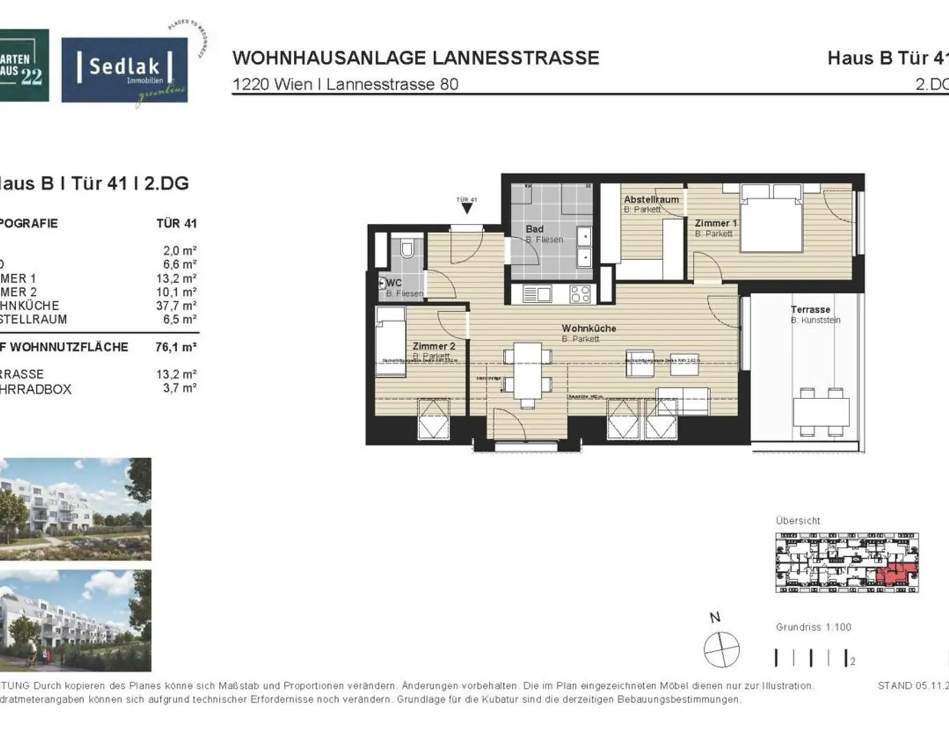 Top 41: helle 3 Zimmer DG Wohnung mit ca. 75,62m² zzgl. 13,20m² Terrasse Zusätzlich stehen noch ca. 4.500m² parkähnlicher Garten für alle Bewohner:innen zur Verfügung. Genügend Platz also, um schöne Sommertage allei…