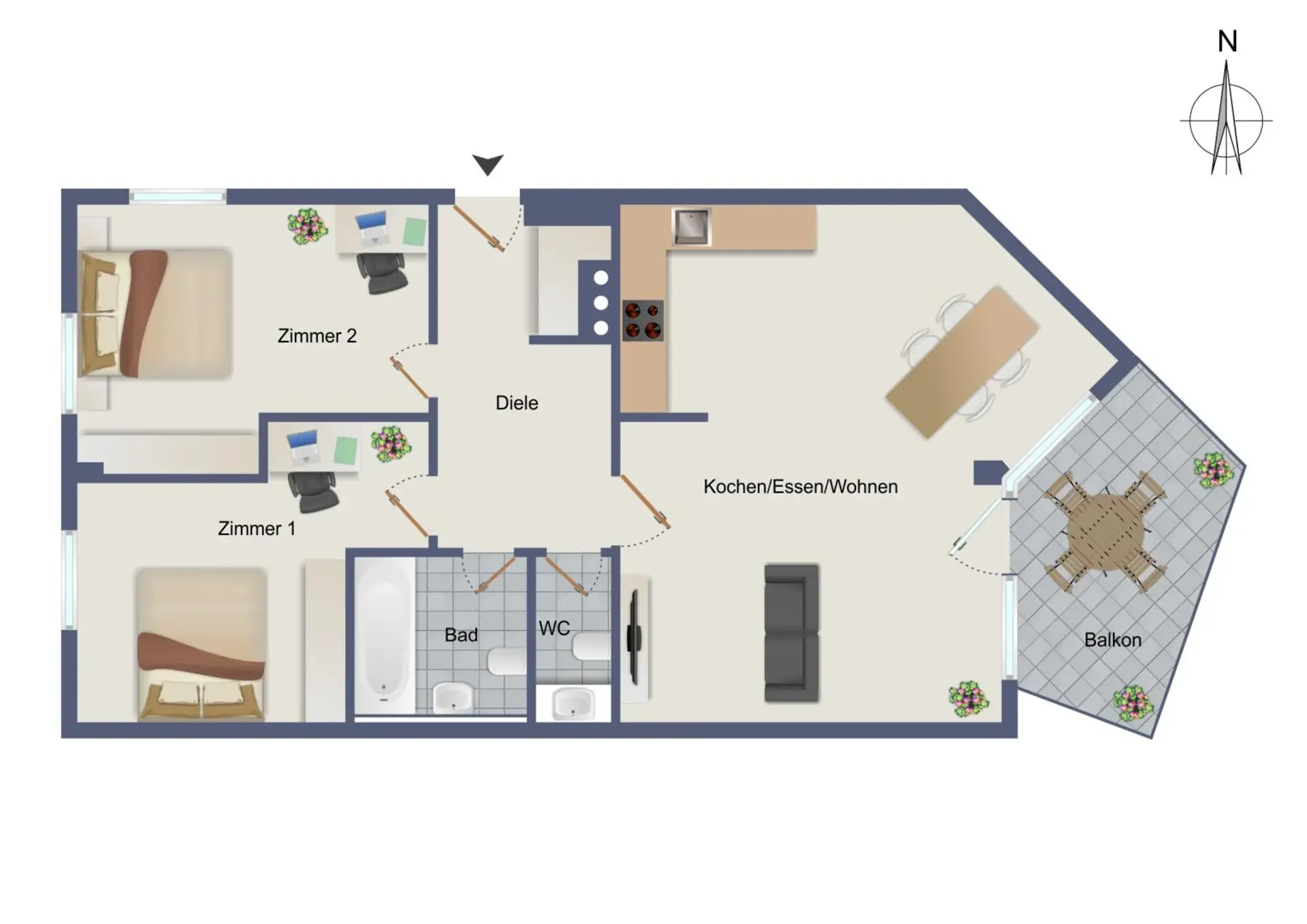 Eine Freifläche finden wir in Form eines östlich ausgerichtete Balkon, auf dem Sie bereits in den Morgenstunden die Sonne genießen und entspannt in den Tag starten können.