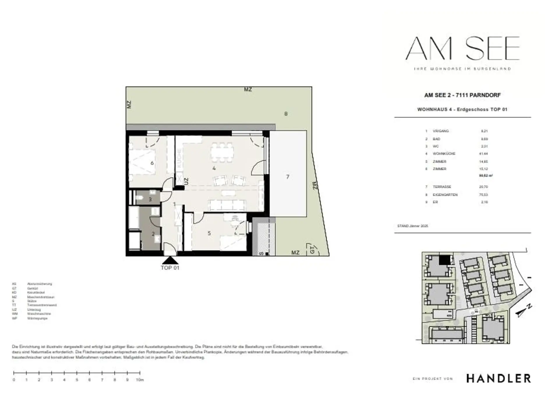 Das Projekt Wohnen am See liegt in idyllischer Ruhelage am östlichen Ortsrand von Parndorf, nur wenige Schritte vom See entfernt. Eingebettet in großzügige Grünflächen genießen Bewohner hier naturnahes Wohnen mit hohem Freizeitwert. Rad- und Spazierwege führen direkt an der Anlage vorbei, während Badeseen, Sport- und Erholungsmöglichkeiten in unmittelbarer Nähe zur Verfügung stehen.Gleichzeitig überzeugt die Lage durch ihre ausgezeichnete Verkehrsanbindung: Über die A4 und A6 ist Wien in rund 30 Minuten erreichbar, der Flughafen Wien-Schwechat in etwa 25 Minuten. Das Designer Outlet Parndorf sowie zahlreiche Einkaufsmöglichkeiten, Schulen und Kindergärten befinden sich im nahen Umfeld.So verbindet Wohnen am See das Beste aus beiden Welten – entspanntes Wohnen im Grünen und die schnelle Erreichbarkeit der Stadt.