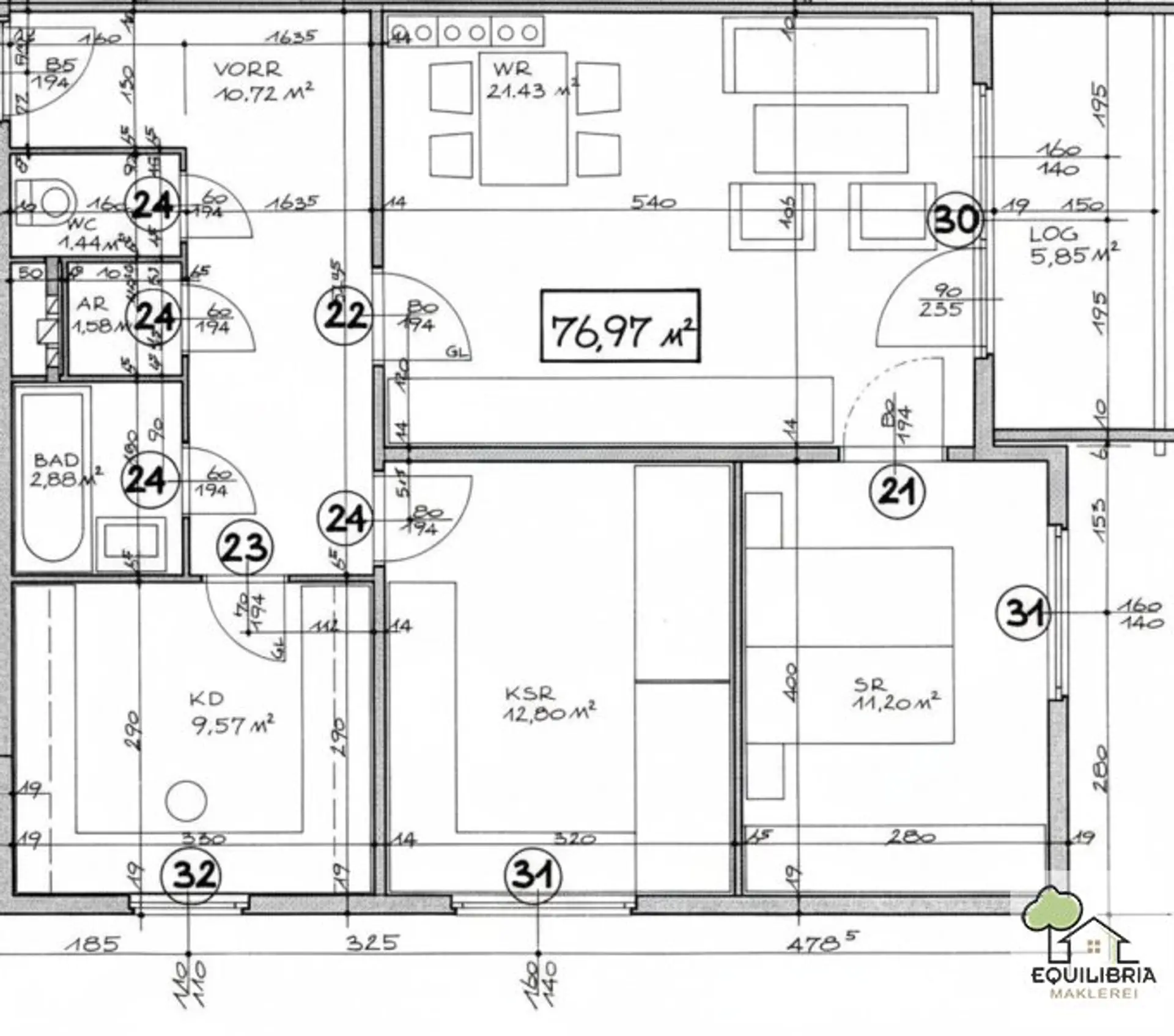 Die ca. 77m² Wohnfläche gliedern sich in ein geräumiges Vorzimmer, ein sehr helles und großzügiges Wohnzimmer mit Ausgang zur ca. 6 m² großen Loggia mit unverbaubarem Grünblick,