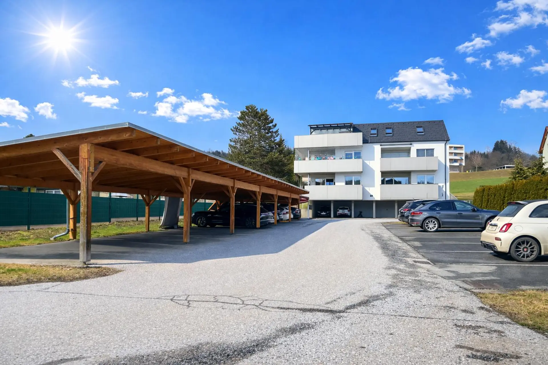 Beheizt wird die Wohnung komfortabel mittels Fernwärme. Für angenehmen Sonnenschutz sorgen teilweise Rollläden sowie Innenrollos. Ein Carport und ein Kellerabteil sind der Wohnung zugeordnet. Außerdem stehen noch ausreichend Besucherparkplätze zur Verfügung.
