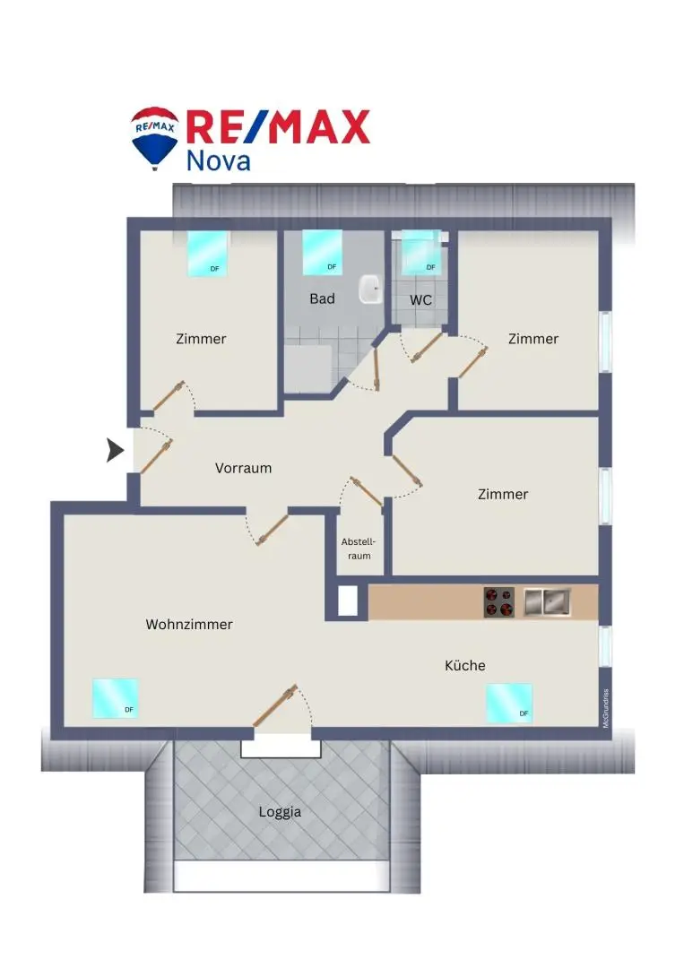Die Wohnung bietet eine großzügige Wohnfläche von ca. 92,12 m² und punktet durch einen durchdachten Grundriss sowie lichtdurchflutete Räume. Besonders hervorzuheben ist die südseitige Loggia, die zusätzlichen Wohnkomfort bietet und zum Entspannen einlädt.