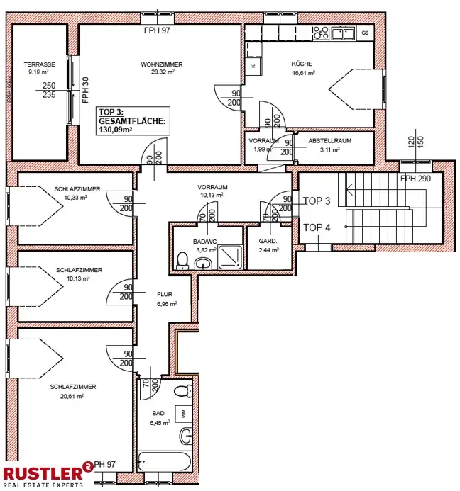 Raumaufteilung: Die Wohnung bietet einen großzügigen Wohn- und Essbereich mit direktem Zugang zur Terrasse. Drei weitere Zimmer eignen sich ideal als Schlafzimmer, Kinderzimmer oder Homeoffice. Eine separate Küche sowie ein Badezimmer und ein zusätzliches WC runden das Raumangebot ab.