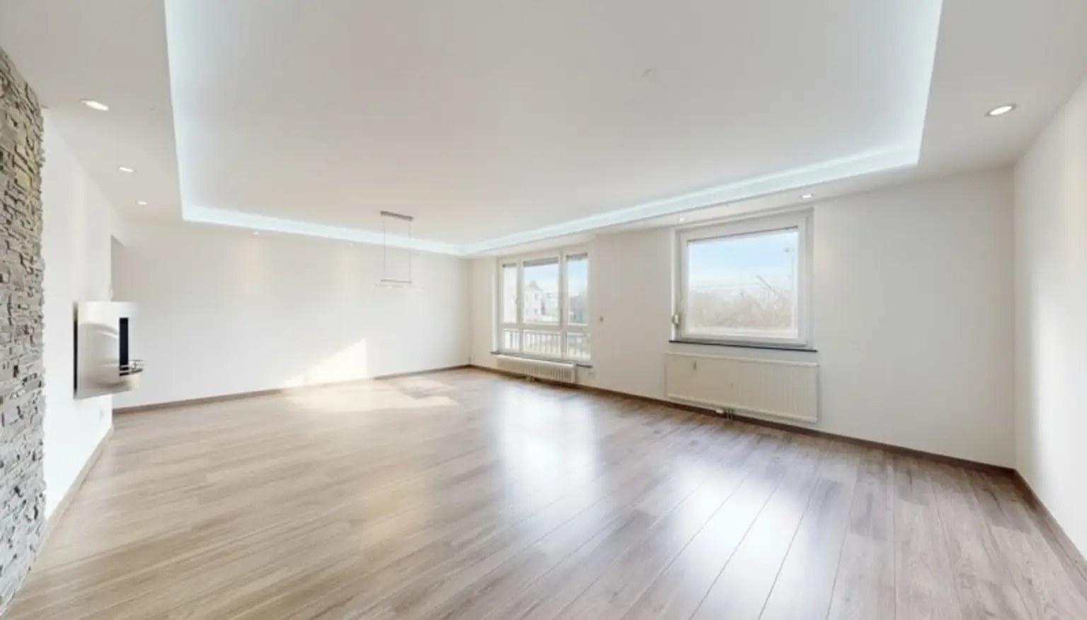 Derzeit verfügt die Wohnung über sowohl über ein sehr großes Wohnzimmer als auch überdurchschnittlich geräumiges Schlafzimmer. Durch einen Umbau in Leichtbauweise könnte aus dieser Wohnung - je nach Lebenssituation - wieder eine Familienwohnung mit 2 - 3 Schlafzimmern entstehen.