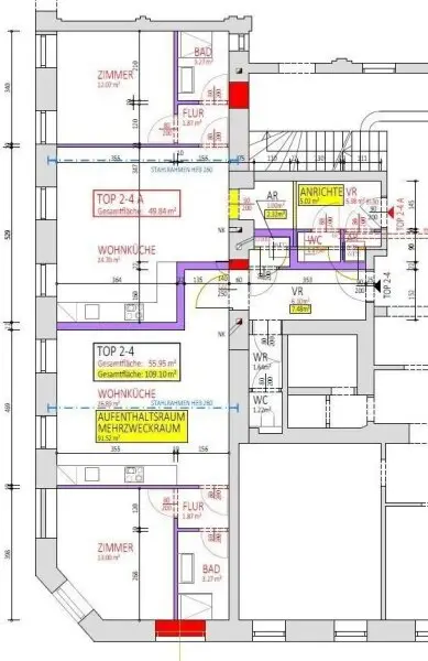 Hierbei handelt es sich um eine ca. 56 m² große unrenovierte Altbaufläche, welche in eine Wohnung umgebaut werden kann. Hierzu gibt es bereits eine Entwurfsplanung (siehe Anhang). Die ursprüngliche Bürofläche wurde zwischenzeitlich bereits zu Wohnzwecken umgewidmet. Die leicht über dem Erdgeschoß gelegen Fläche verfügt über hohe Räume sowie große Fensterflächen, welche eine gute Belichtung garantieren.
