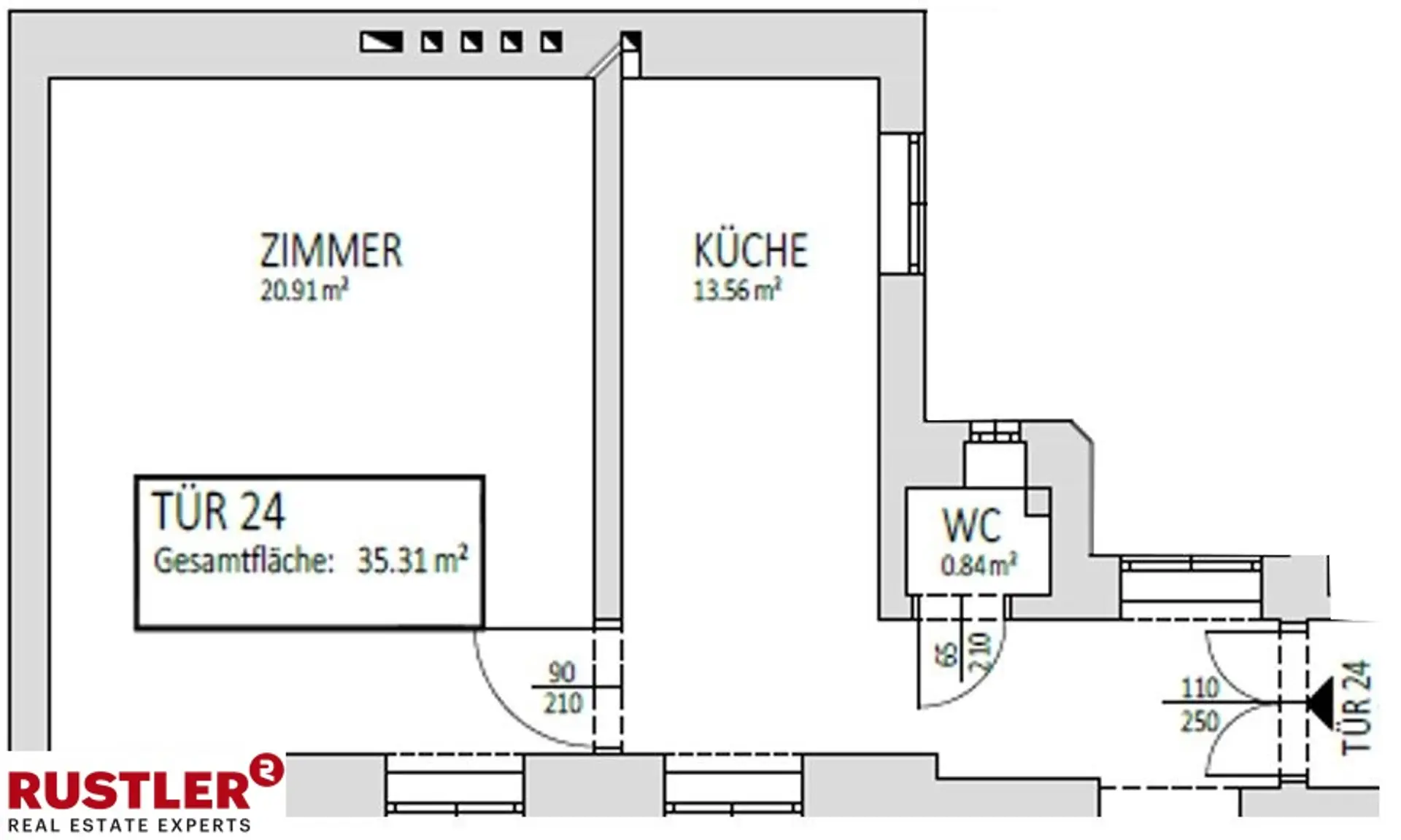 Die Wohnung verfügt über ca.36m² und teilt sich wie folgt auf: