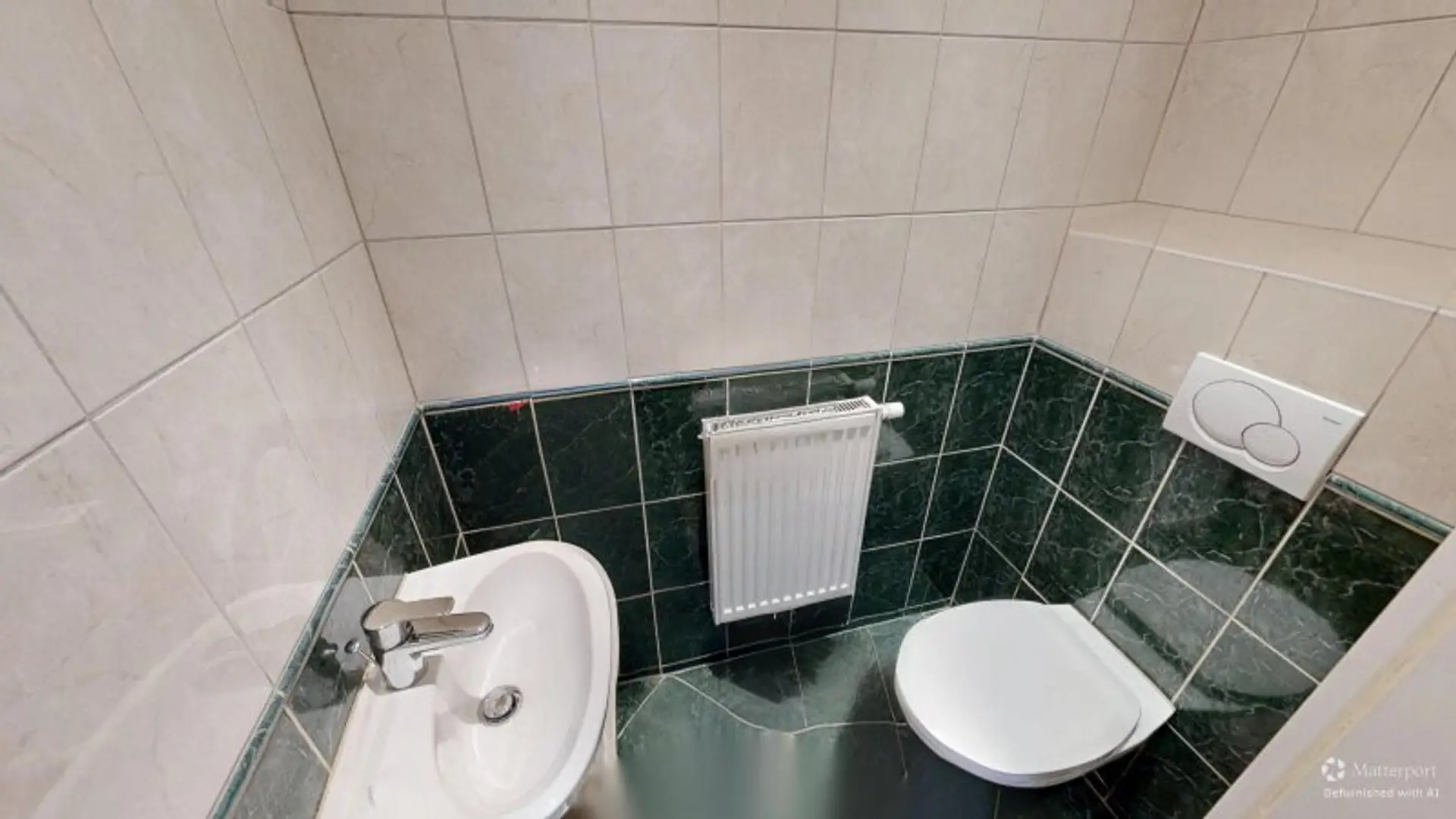 Die Wohnung liegt im 1. Stock, den Sie entweder über das elegante Stiegenhaus oder bequem über einen Schlüssellift erreichbar. Beim Betreten gelangt man in ein verfliestes Vorzimmer, das ausreichend Platz für Garderobe und Stauraum bietet. Gleich rechter Hand befindet sich ein separates WC mit Handwaschbecken.