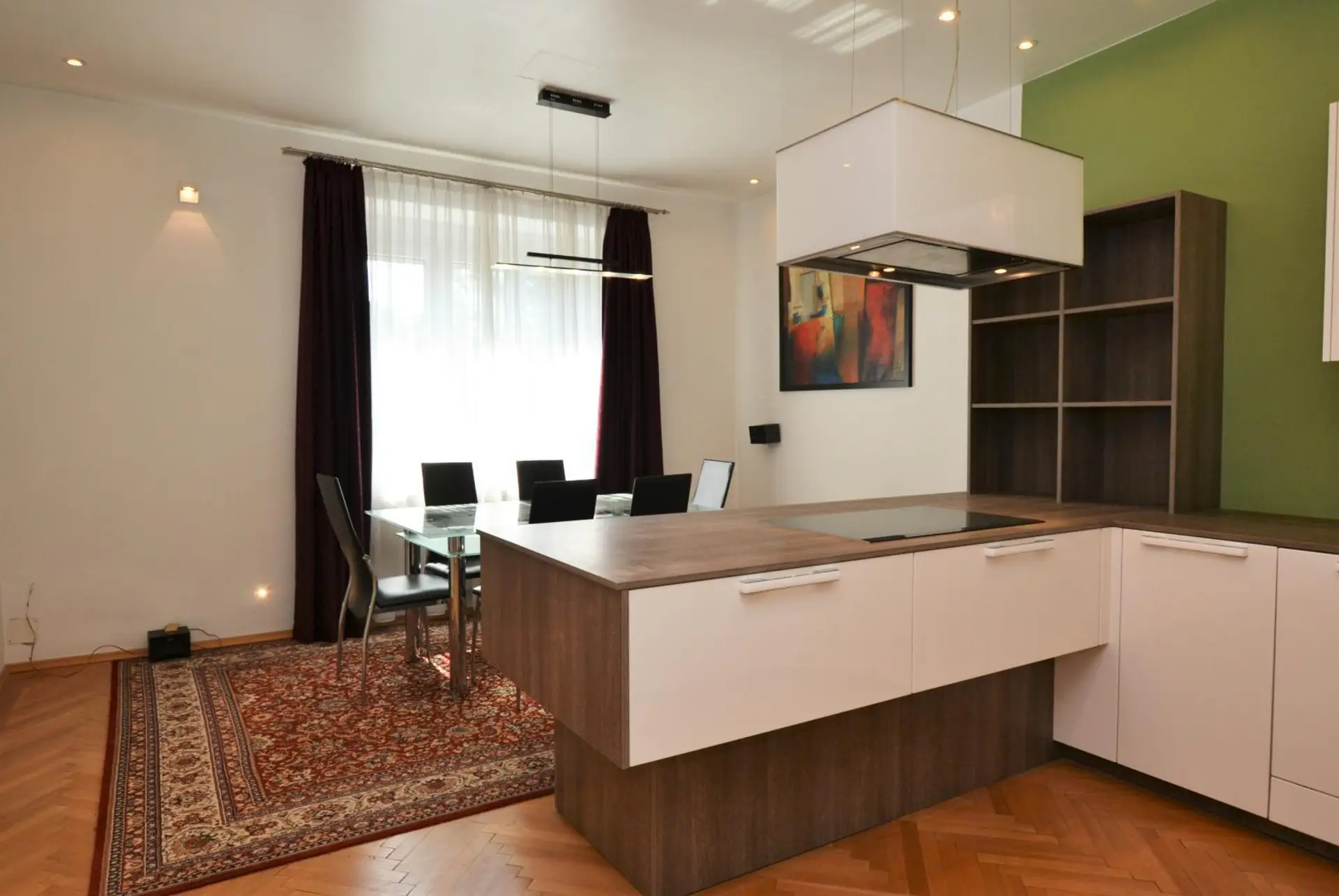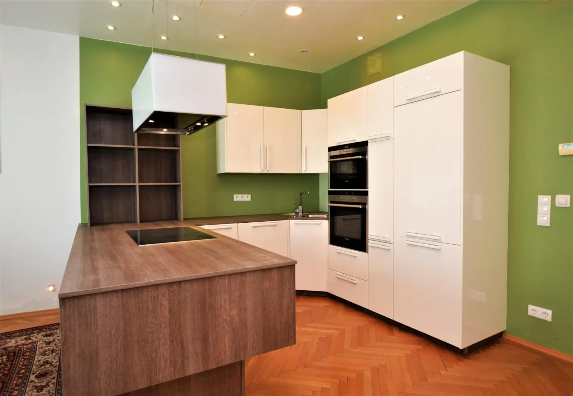 • Wohn-Essbereich mit Balkonzugang – eine großzügige Küche mit hochwertigen Geräten (Cerankochfeld, Backrohr, eingebauter Kühl-Gefrierkombination, Umluft-Dunstabzug, Dampfgarer und Ofen), viel Arbeitsfläche und Stauraum sowie ein angrenzender Essbereich, verbunden mit dem Wohnzimmer. Ein idealer Ort zum Kochen, Genießen und Beisammensein.
