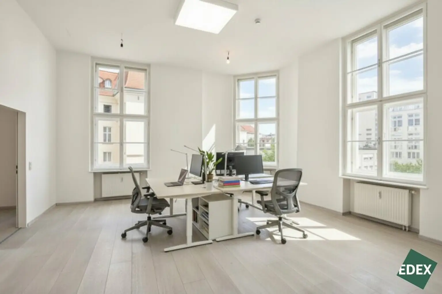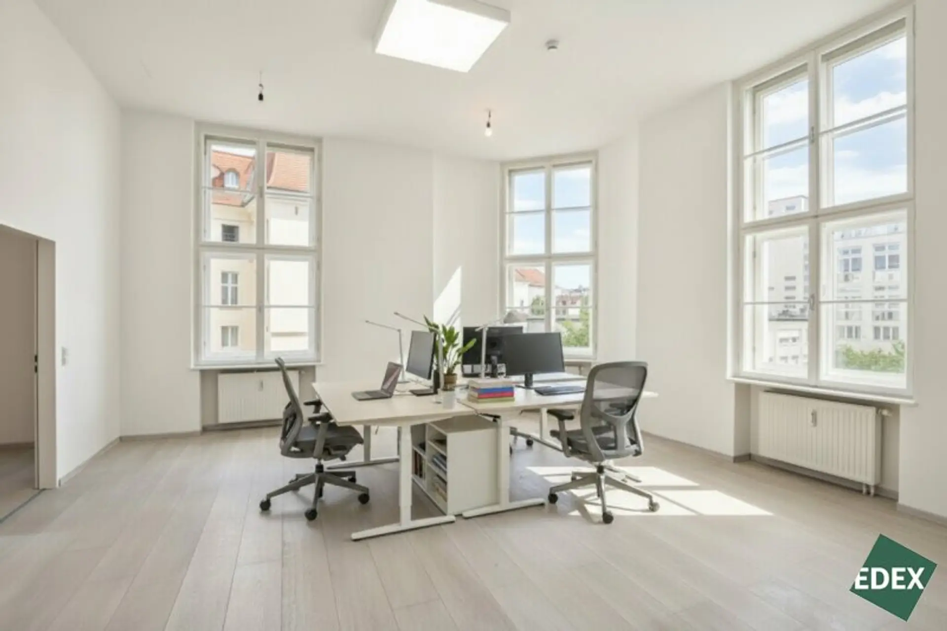 Zur Vermietung gelangt eine helle Bürofläche mit ca. 200 m² in ausgezeichneter Lage zwischen Karlsplatz und Stadtpark. Die Fläche besteht aus vier geräumigen Bürozimmern, einem großzügigen Vorraum mit Glastrennwand, getrennten WC-Einheiten sowie einer Teeküche.