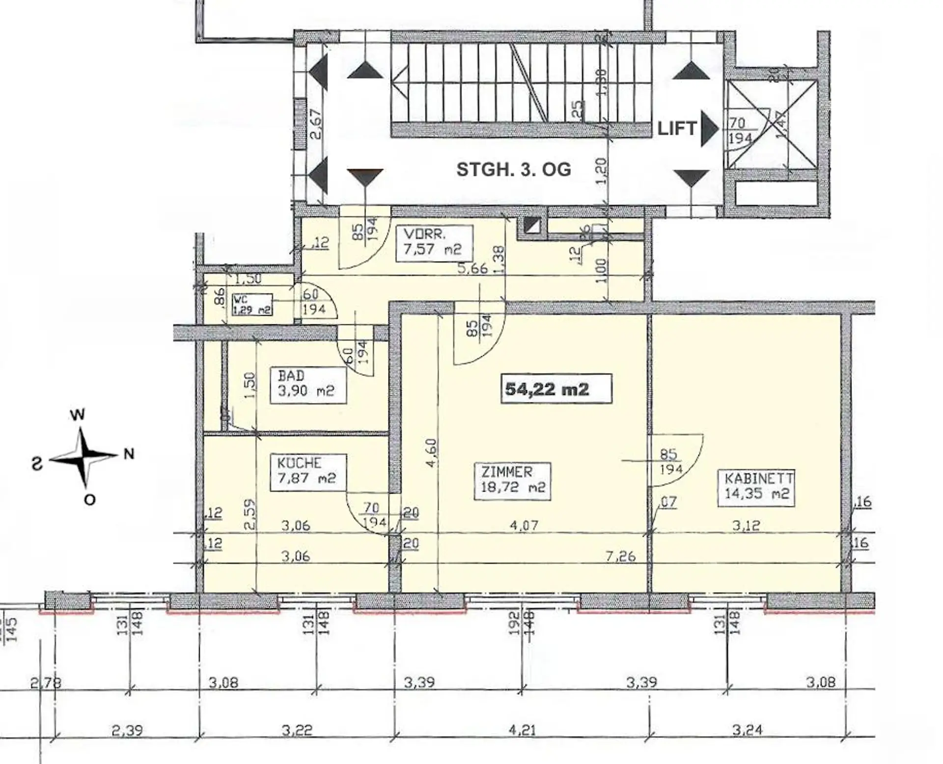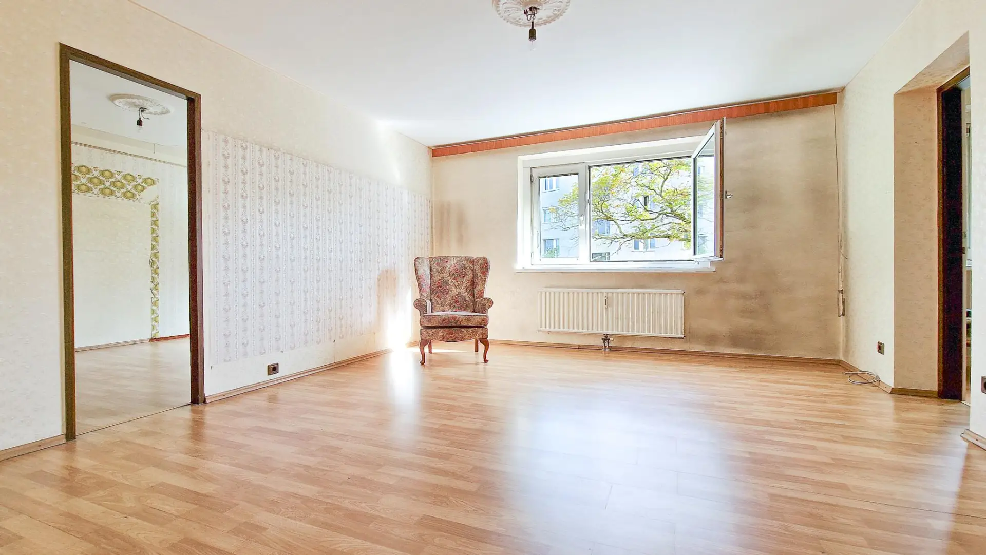 Die Wohnfläche beträgt 52,83 m² (laut Nutzwertgutachten) und verteilt sich auf 2 Zimmer, eine Küche (alle hell mit Grünblick) sowie Nebenräume.