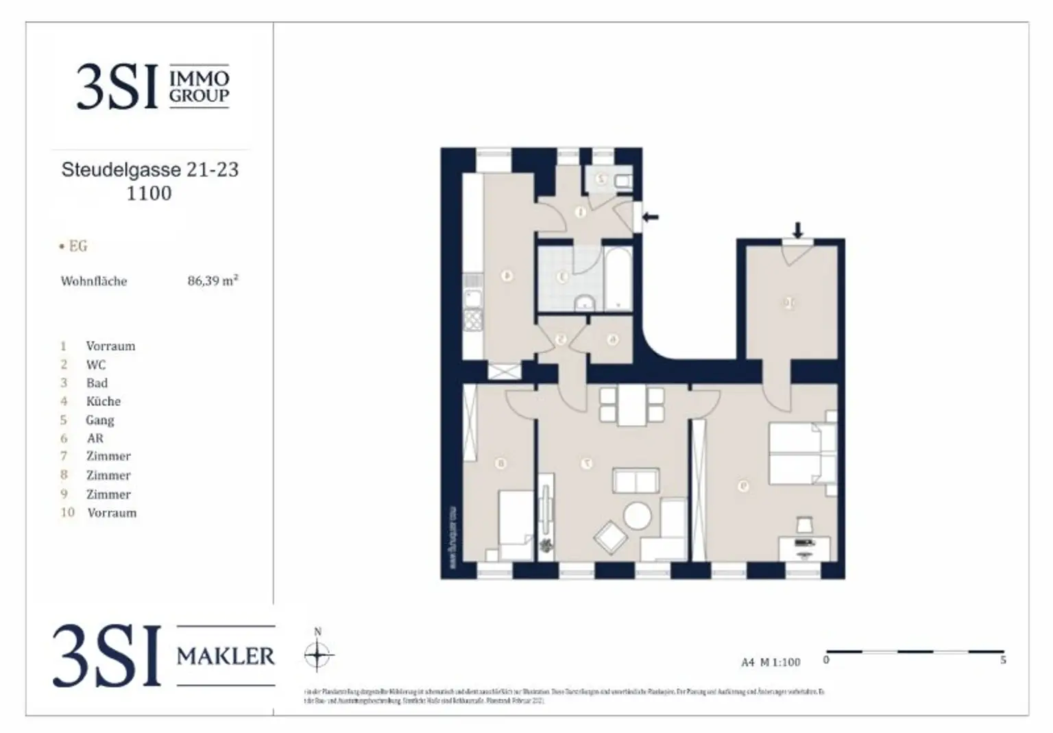 Diese großzügige Erdgeschosseinheit, welche Teils in den ruhigen Innenhof, und Teils westseitig in Richtung der Steudelgasse gelegen ist, bietet anhand Ihres durchdachten Grundrisses, zahlreiche Nutzungsmöglichkeiten.