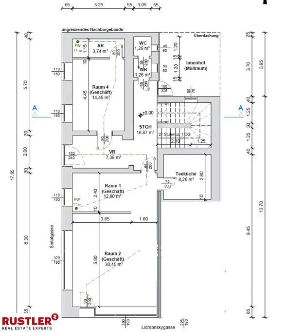 Diese einzigartige Geschäftsfläche im Stadtzentrum von Klagenfurt am Wörthersee bietet eine herausragende Gelegenheit für ein exklusives Geschäftskonzept. Die Fläche ist derzeit im Rohbau-Zustand und erstreckt sich über zwei separat begehbare Einheiten. Einmal die größere Fläche mit Schaufensterfront zur Lidmanskygasse und einemal einer kleineren Fläche mit Fenster und Blick in die Spitalgasse. Besonders beeindruckend sind die großzügigen Schaufensterfronten der größeren Fläche, die eine optimale Sichtbarkeit und Präsentationsmöglichkeiten für Produkte bieten.