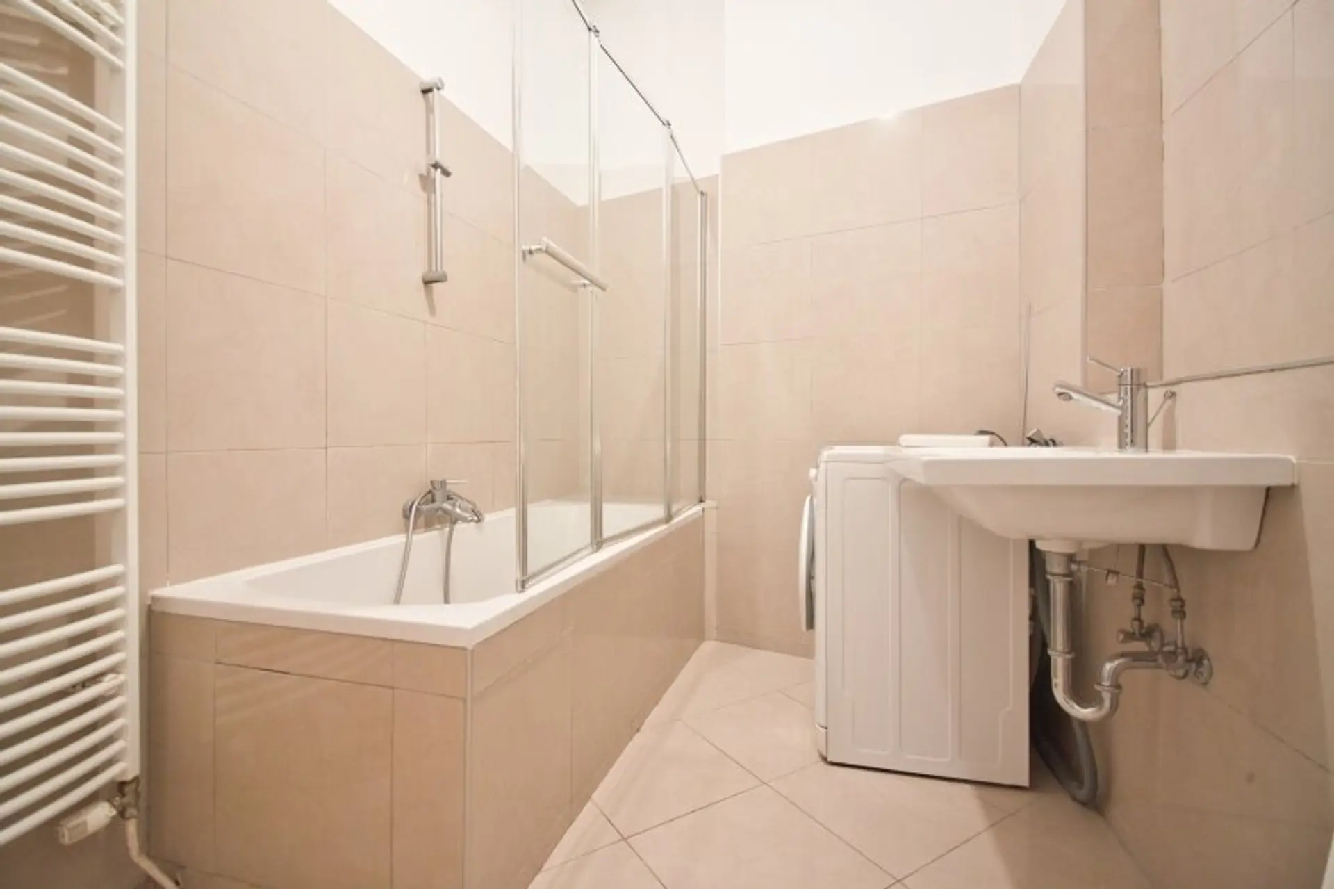* Badezimmer mit Badewanne und Waschmaschinenanschluss