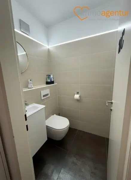 * modernes Bad und separates WC mit Lüftung