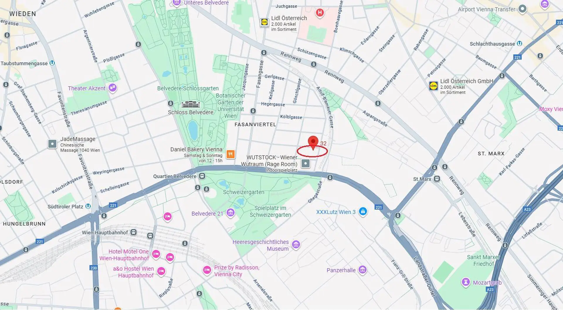Die Wohnung liegt im Fasanviertel, unweit von Rennweg, Landstraße Hauptstraße und Schloss Belvedere.