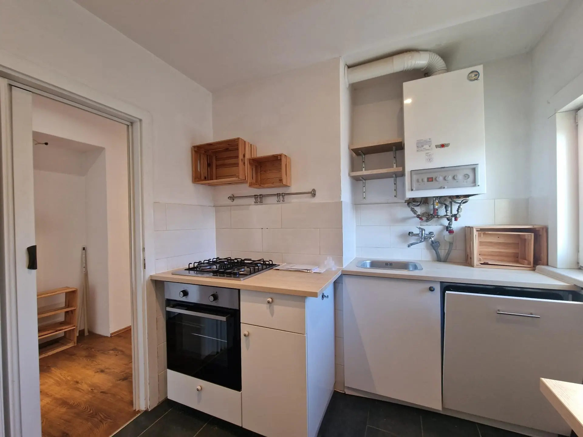 Raumaufteilung: Vorraum, Bad, WC,Küche, Terrasse und 2 weitere Zimmer.