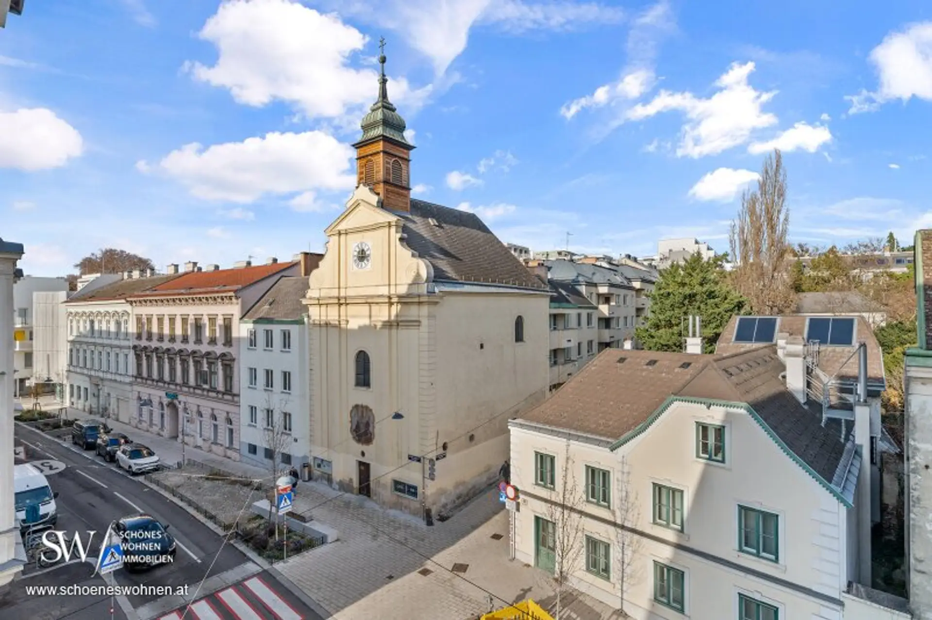 Die Wohnung befindet sich in einer ruhigen Seitengasse, nur 2 Gehminuten von der U4 Station Hietzing – urban gelegen und dennoch im Grünen.