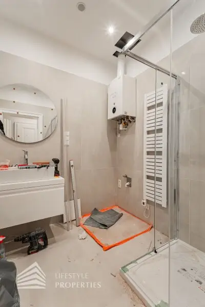 Die Wohnung mit ca. 66 m² befindet sich im 2. Liftstock eines um die Jahrhundertwende errichteten Stilaltbaus in einer gefragten Wohngegend des 4. Wiener Gemeindebezirks. Die elegante Gründerzeitfassade sowie auch sämtliche Allgemeinflächen des Hauses wurden mit viel Liebe zum Detail renoviert. Die Wohnung gliedert sich in einen Vorraum, eine Küche, ein Wohnzimmer, zwei Zimmer, ein Bad und ein WC.