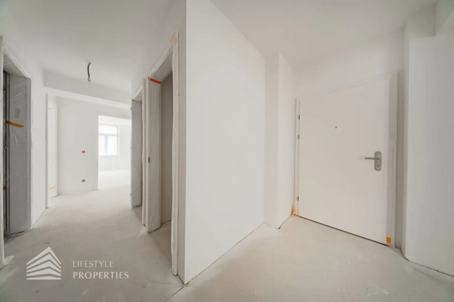 Diese helle 4-Zimmer Wohnung mit ca. 106 m² befindet sich im 2. Liftstock, eines charmanten modernisierten Gründerzeithauses, in welchem 9 Wohnungen mit Wohnflächen zwischen 95 m² und 130 m² mit hochwertiger Ausstattung zum Verkauf gelangen. Die Wohnfläche gliedert sich in einen Vorraum, eine Wohnküche, drei Zimmer, ein Badezimmer, einen Abstellraum und eine separate Toilette. Zusätzlich dazu bietet Ihnen das Objekt einen ca. 10 m² großen Balkon. Alle Wohnräume sind mit hochwertigem Eichenparkett ausgestattet, während das Badezimmer mit zeitlos eleganten Fliesen versehen ist. In der gesamten Wohnung sorgt eine Fußbodenheizung für angenehmen Komfort.