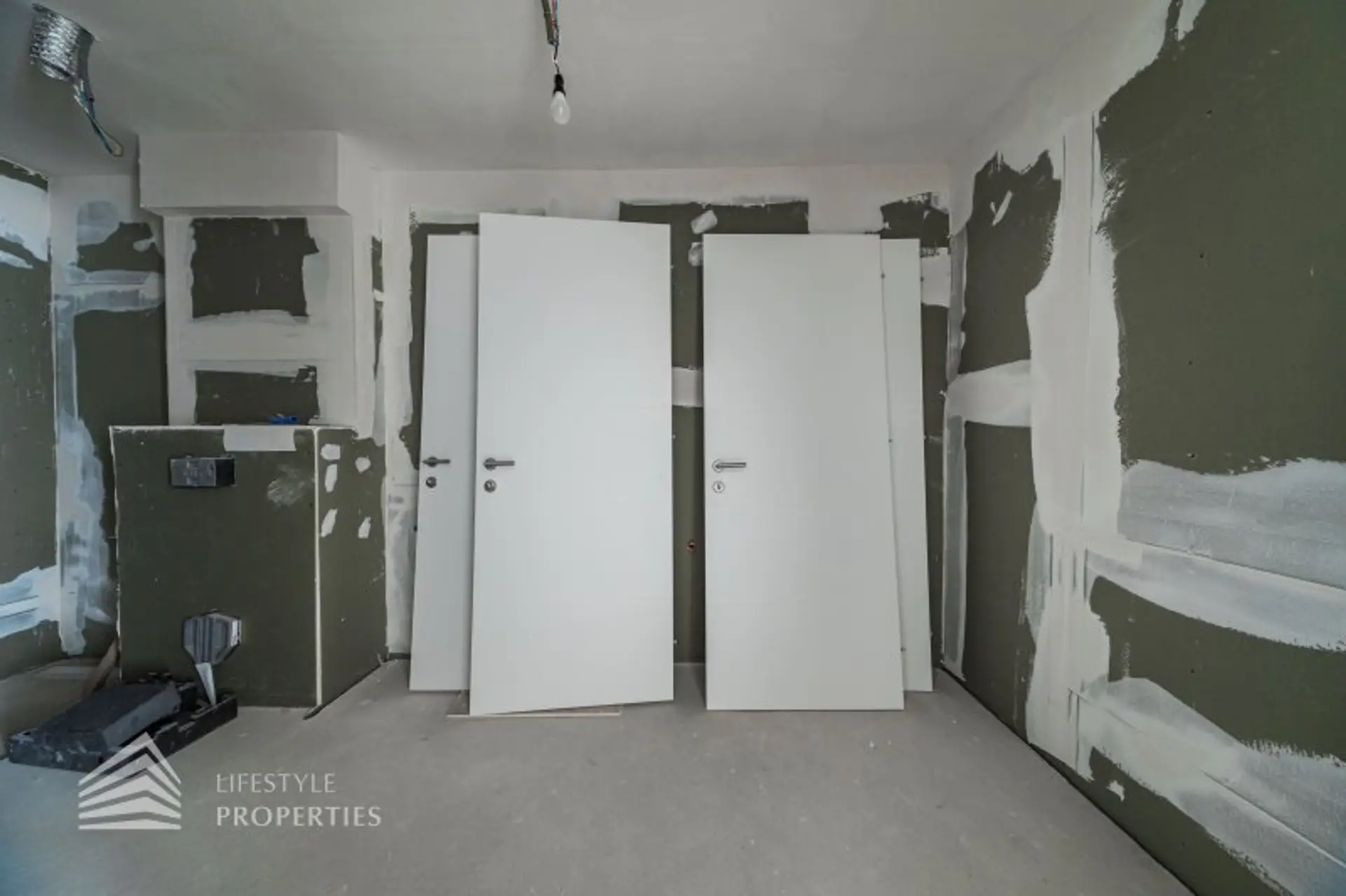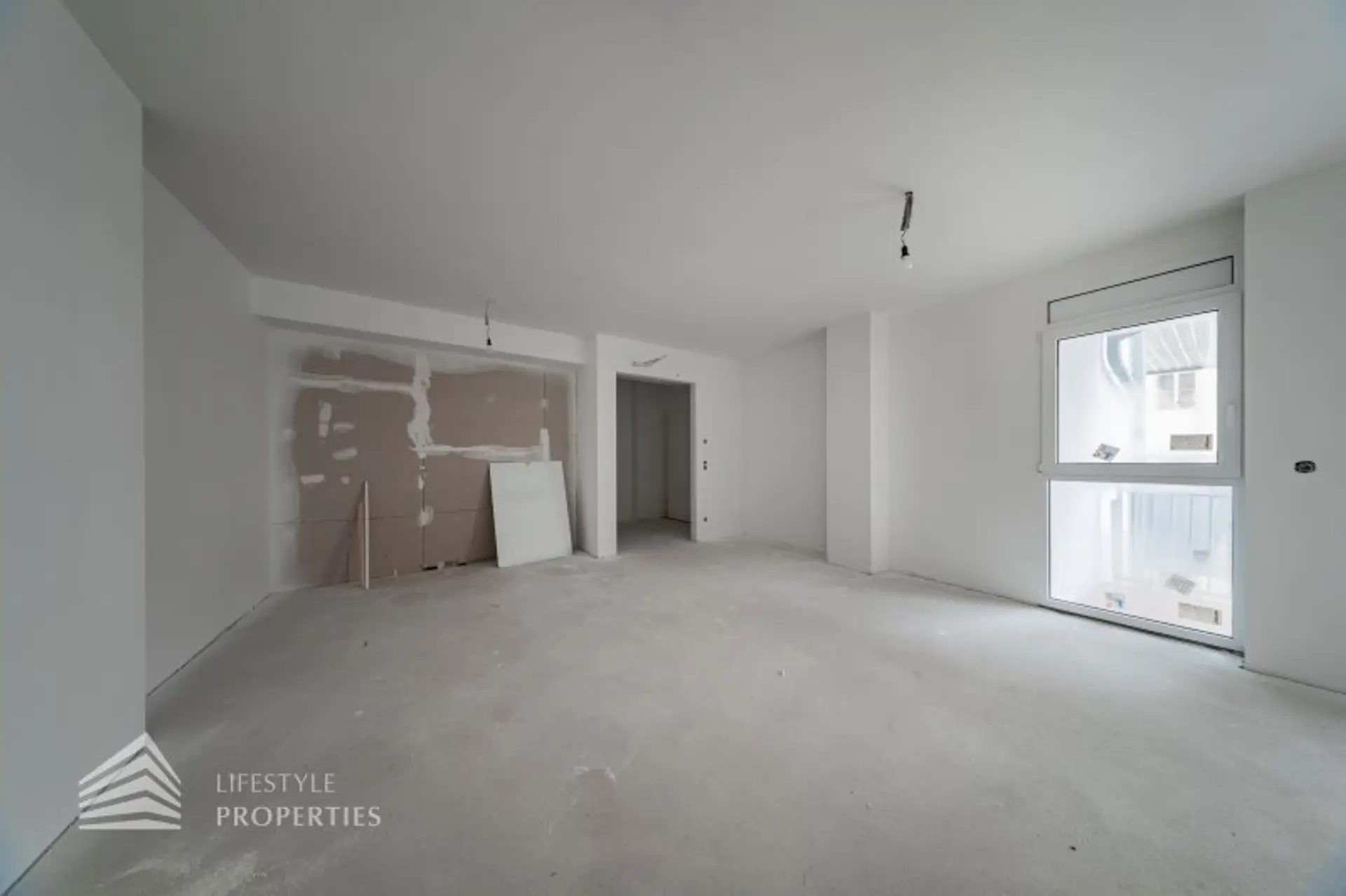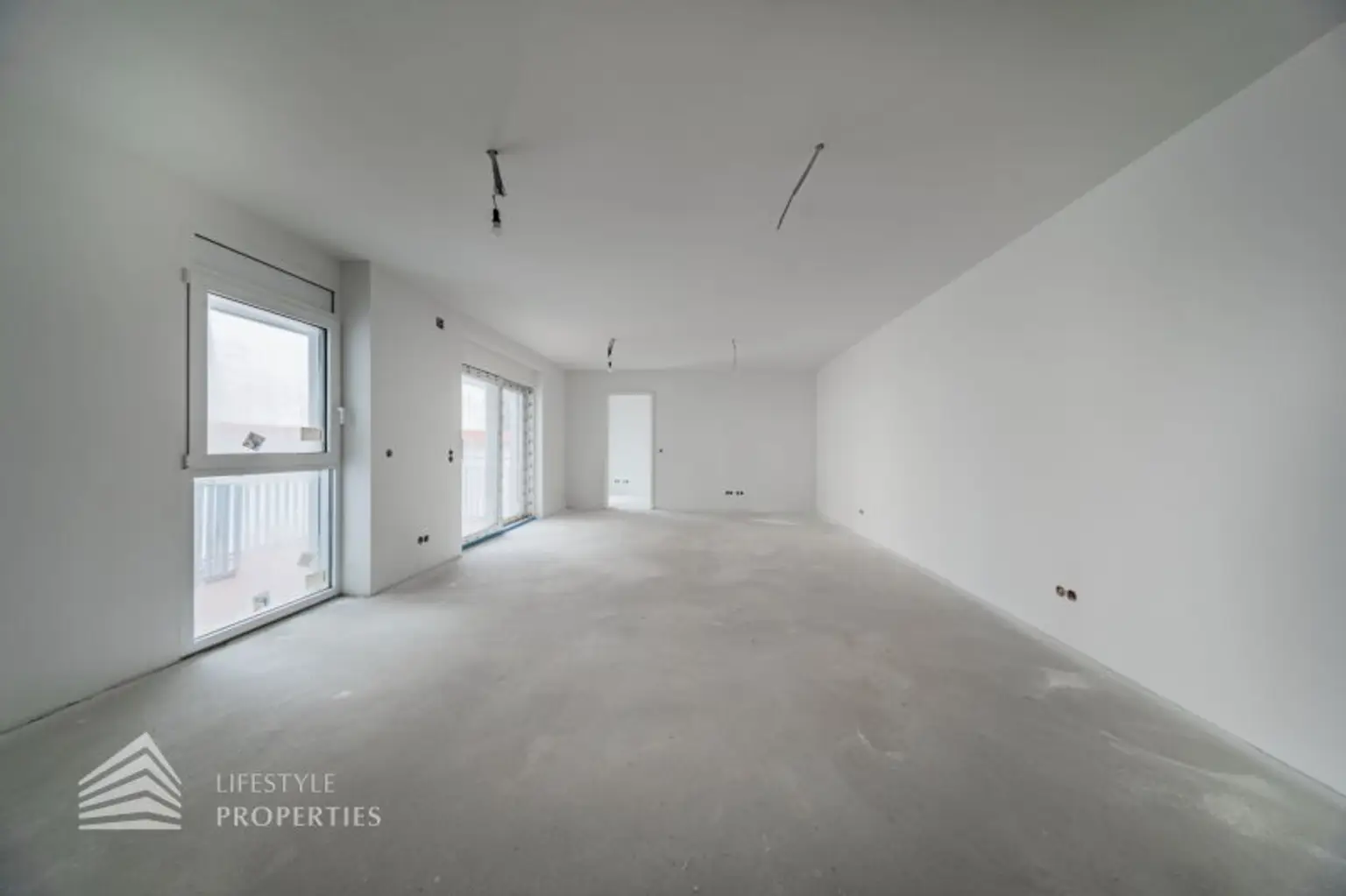 Sie betreten die Wohnung und befinden sich im Vorraum. Links gelangen Sie in eine großzügige Wohnküche mit Anschlüssen für eine offene Küche von hier haben Sie Zugang zum schönen Balkon. Gleich neben der Wohnküche befindet sich eines der Zimmer. Beim Eingang rechts gelangen Sie zu den zwei anderen Schlafzimmern. Der Abstellraum mit Waschmaschinenanschluss und das Badezimmer welches mit einer Badewanne, einer Dusche, einem Doppelwaschbecken und einem WC ausgestattet ist, sowie ein separates WC befinden sich im Vorraum.