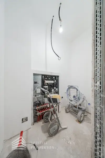 Jede Wohnung des Hauses verfügt über Freiflächen (Balkone, Terrassen bzw. Grünflächen). Alle Wohnräume sind mit hochwertigem Eichenparkett ausgestattet, während das Badezimmer mit zeitlos eleganten Fliesen versehen ist. In der gesamten Wohnung sorgt eine Fußbodenheizung für angenehmen Komfort. Zusätzlichen Stauraum bietet ein großzügiges Kellerabteil. Im Haus stehen zudem ein Kinderwagen- sowie ein Fahrradabstellraum zur Verfügung. Weiters gibt es eine Garage mit 7 KFZ-Stellplätzen.