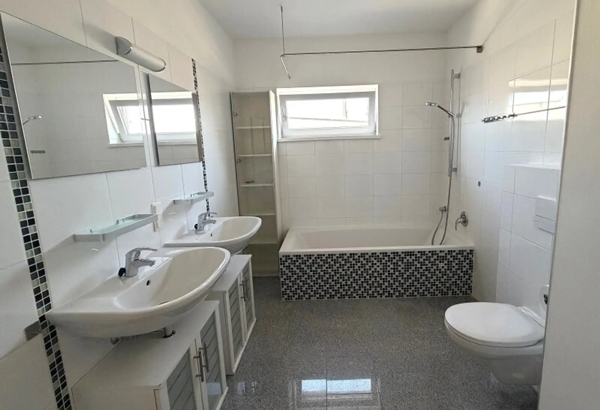 3 Schlafzimmer, 1 Abstellraum, eine offene Ankleide, Badezimmer mit Doppelwaschtisch, Wanne und WC