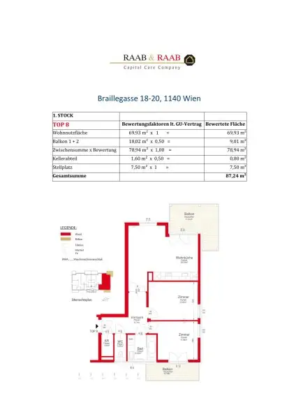 Auf Wunsch kann ein KFZ-Tiefgaragenstellplatz um EUR 25.000,- dazu erworben werden.