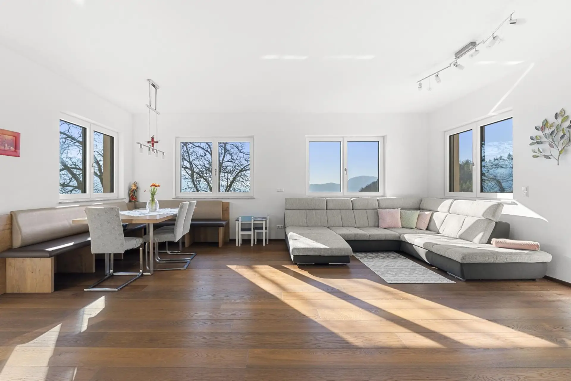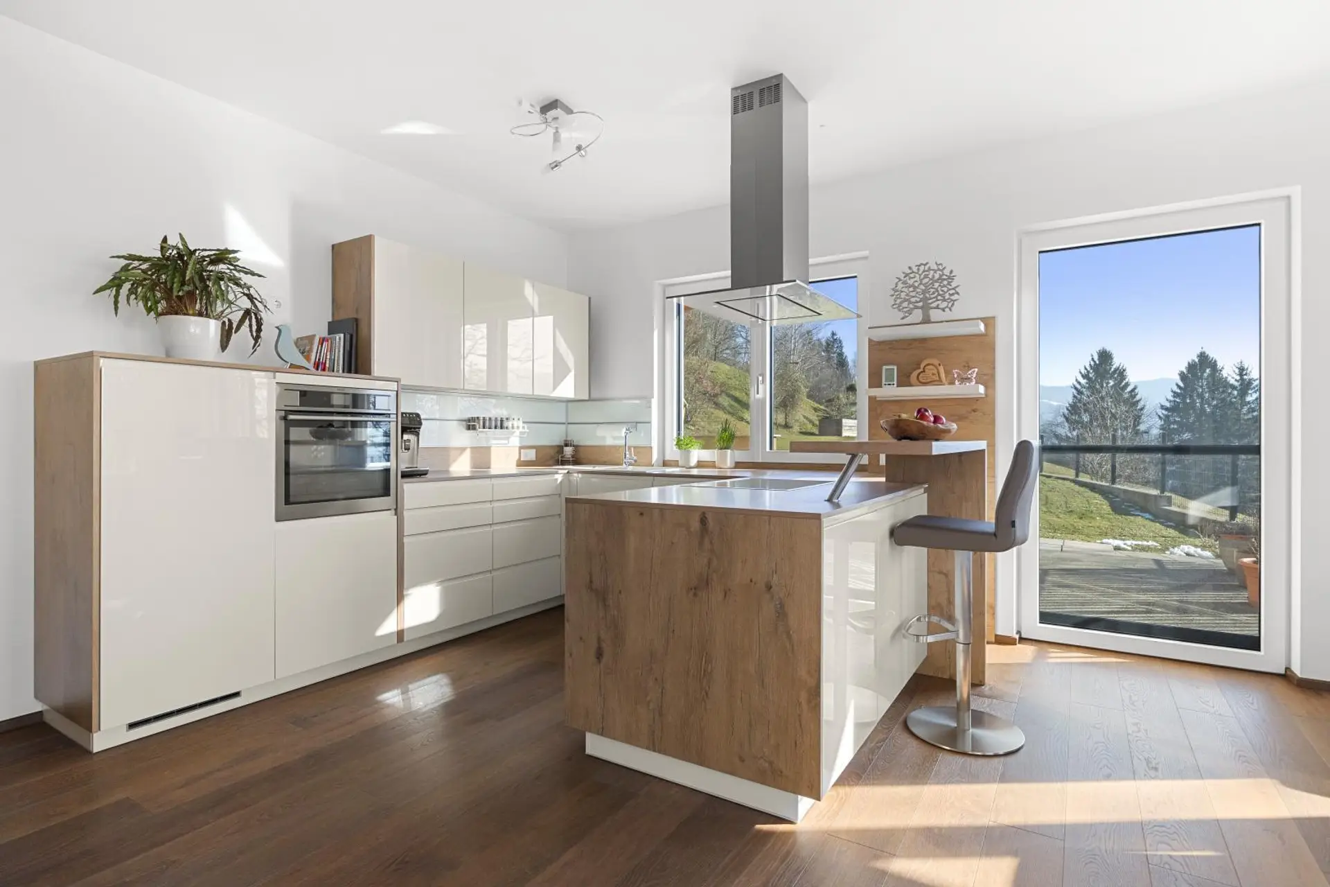 Die Immobilie ist exklusiv und modern möbliert. Das Haus ist ausgestattet mit hochwertigen Internorm-Fenstern mit 3-fach-Verglasung, elektrischen Jalousien und Insektenschutz. Zwei Tageslichtspots im Flur sorgen für angenehmes Licht. Beheizt wird das Haus mittels einer Pellets-Zentralheizung und die installierten Raumthermostate ermöglichen eine perfekte Regulierung des Raumklimas. Zur Warmwasseraufbereitung wurde eine Solaranlage errichtet. Große Fensterfronten holen die Natur ins Haus und eröffnen einen unvergleichlichen Blick auf die umliegende Landschaft. Das Badezimmer ist mit Badewanne und barrierefreier Dusche ausgestattet. Eine teilüberdachte Terrasse mit ca. 48,74 m² schafft einen perfekten Wohlfühlort umgeben von herrlicher Natur.
