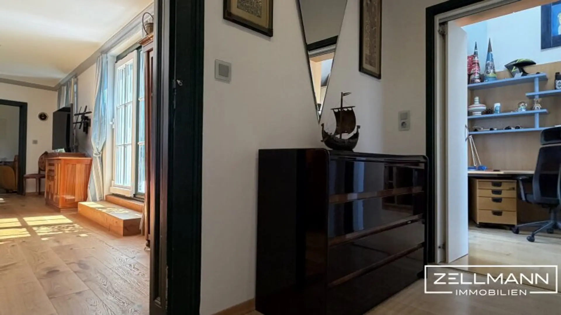 Diese Immobilie vereint herrschaftliche Wohnräume, eine spektakuläre Dachterrasse mit 360°-Blick, einen außergewöhnlich großen Privatgarten, ein winterfestes Sommerhaus und die komfortable Lage im ersten Stock.