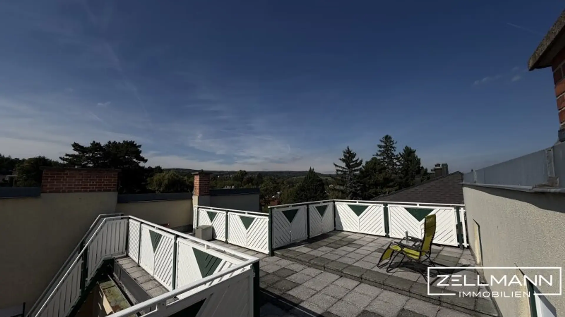 Dachterrasse & Balkone: ca. 70 m² mit 360°-Panoramablick über Wien und bis in den Wienerwald