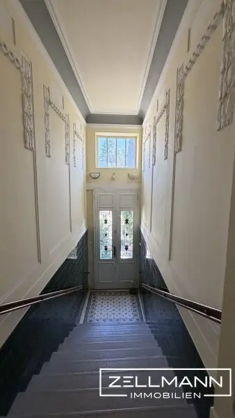 Schon beim Betreten dieses prachtvollen Jugendstilhauses zeigt sich: Dieses Objekt ist einzigartig. Der elegante Eingangsbereich mit originalen Fliesen und kunstvollen Schmiedeelementen vermittelt sofort jene herrschaftliche Noblesse, die man in Wien-Mauer seit Generationen schätzt.