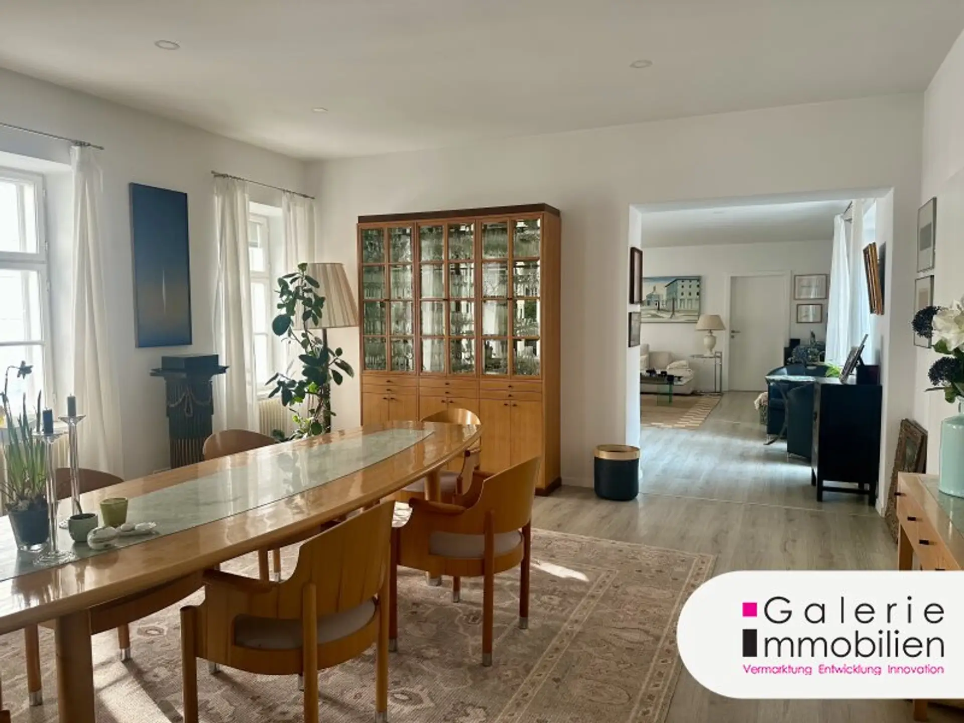 Derzeit ist die Immobilie in zwei Teile geteilt. Der hintere Teil wird von den Eigentümern bewohnt. Straßenseitig ist eine Wohnung mit 149m² Wohnfläche und einem kleinen Balkon mit 7m² in den Innenhof um weitere 5 Jahre um Brutto € 2.953,30 vermietet.