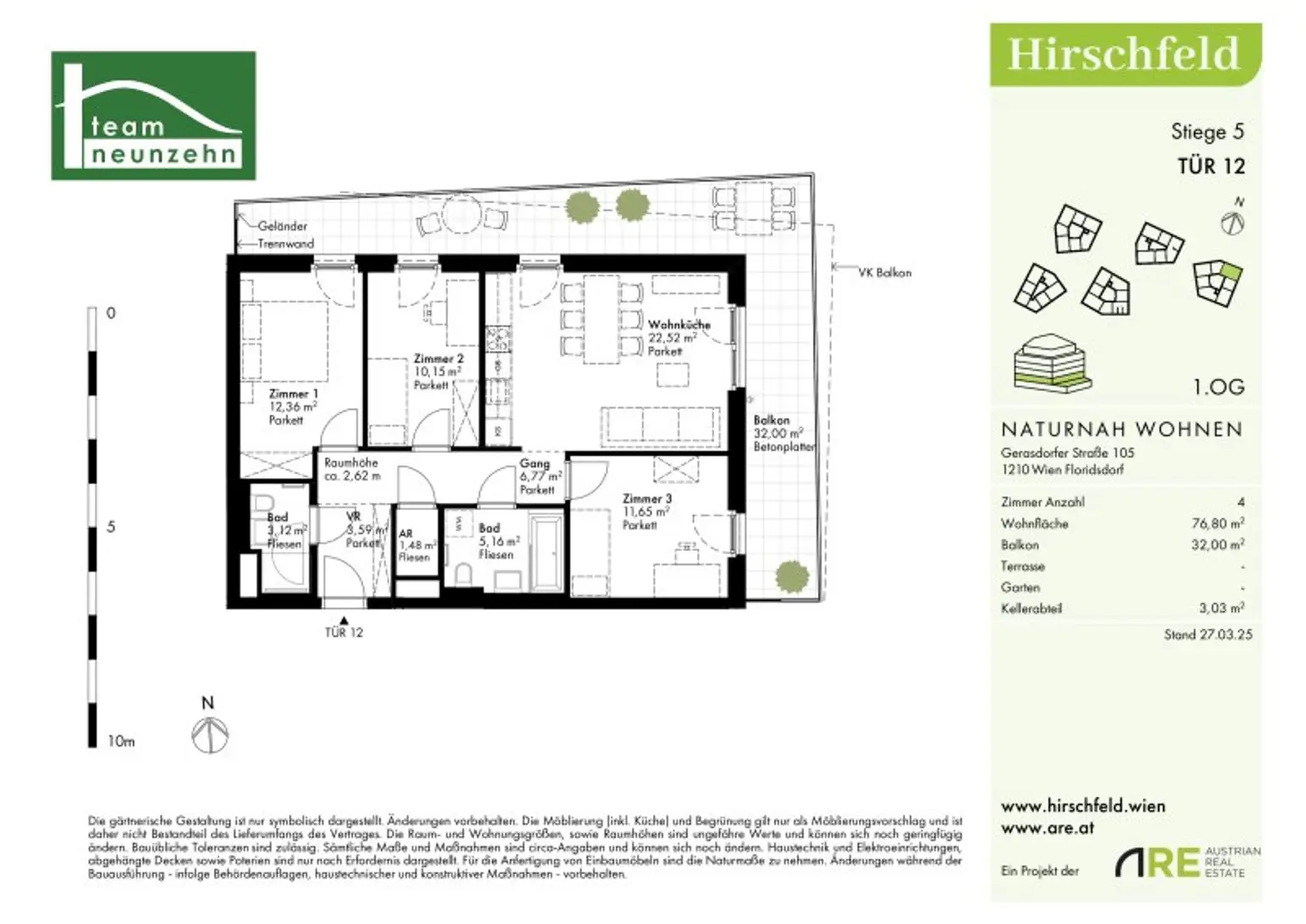 Die gegenständliche Liegenschaft im Projekt „Hirschfeld – Naturnah wohnen“ wurde im Jahr 2025 fertiggestellt und bietet Ihnen hochwertige Eigentumswohnungen und KFZ-Stellplätze.