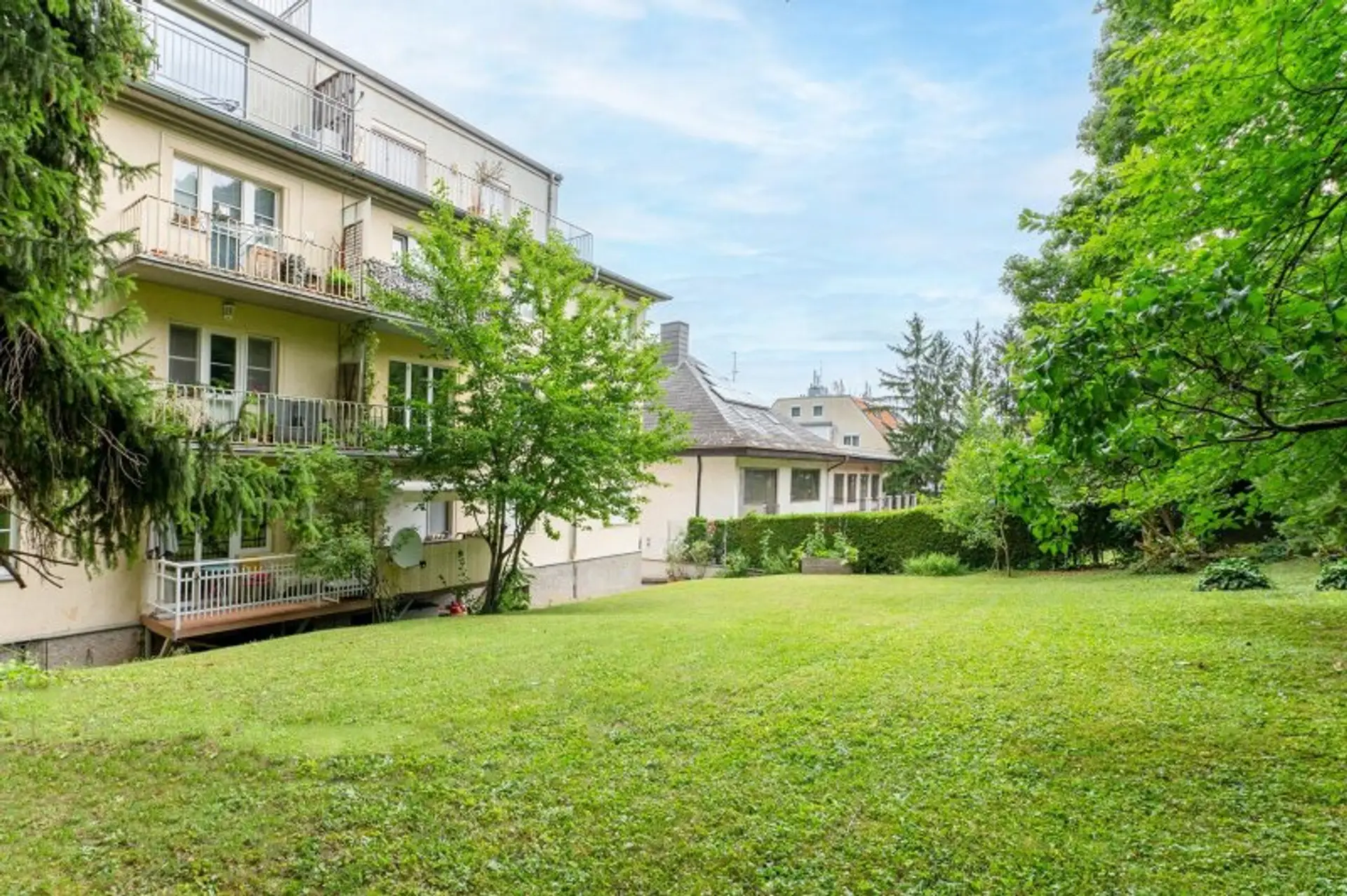 Zur Wohnung gehört ein eigenes Kellerabteil. Den Bewohnern des Hauses steht ein Gemeinschaftsgarten zur Verfügung.