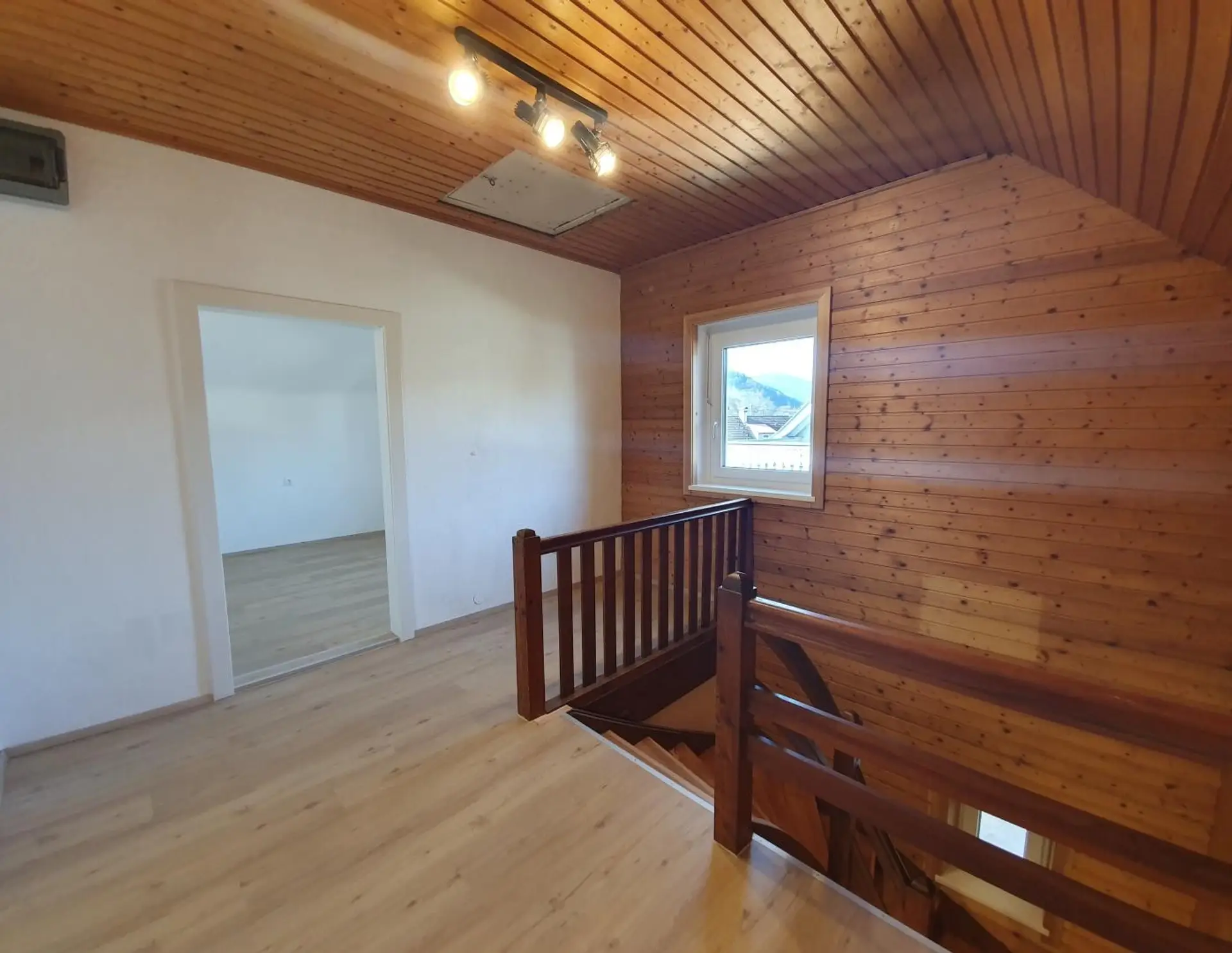 Über eine Holztreppe gelangt man in das Obergeschoss des Hauses. Drei weitere Räume und ein geräumiger Vorraum lassen hier keine Wünsche offen. Jeder einzelne aus der Familie kann sich hier seinen eigenen Rückzugsort schaffen.