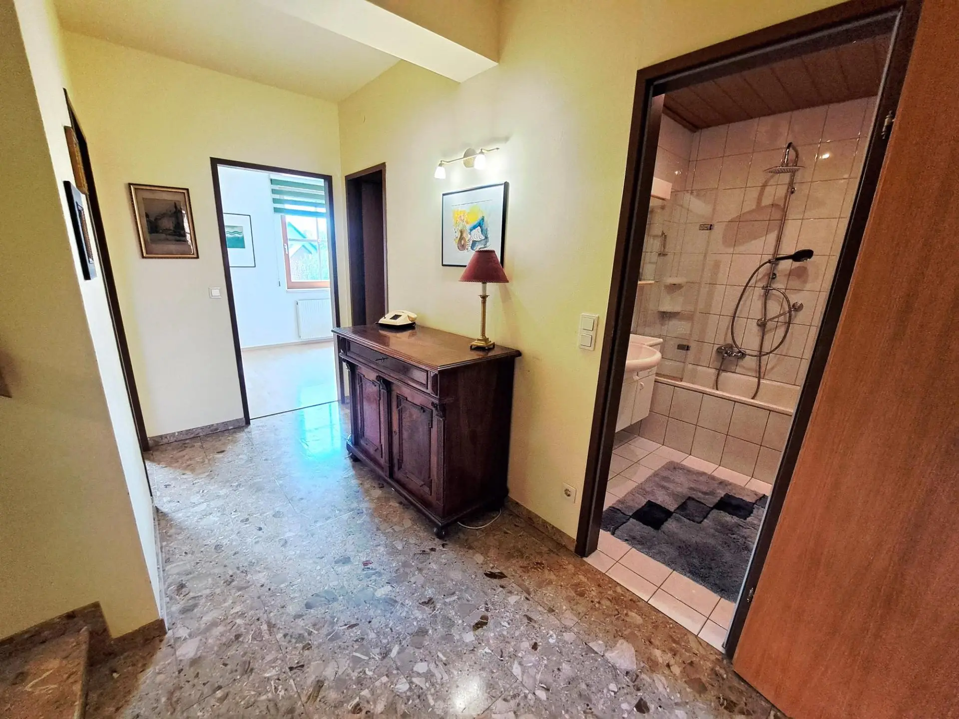 Obergeschoß (OG): 3 Zimmer, Badezimmer, separates WC mit Vorraum, Diele