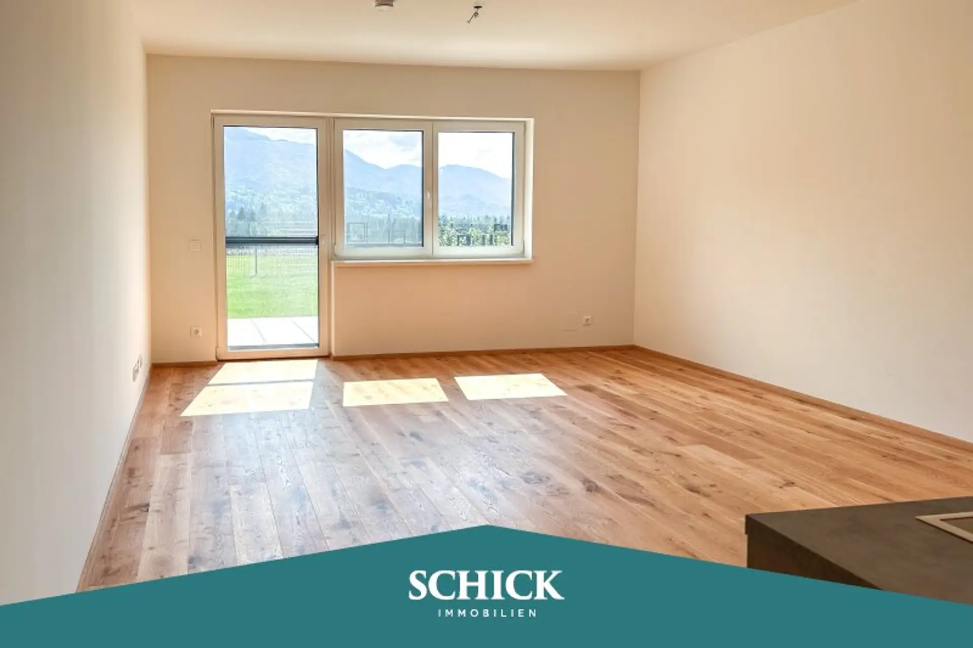 Perfekt aufgeteilte 3-Zimmer-Wohnung inkl. stylischer Einbauküche mit 77,57 m² Wfl. zzgl. 14 m² Sonnen-Terrasse und ca. 165 m² Garten mit Lift, Kellerabteil und 2 KFZ Stellplätze in Tiefgarage. Bezugsfertig - gleich einziehen und den Sommer am Faaker See genießen!