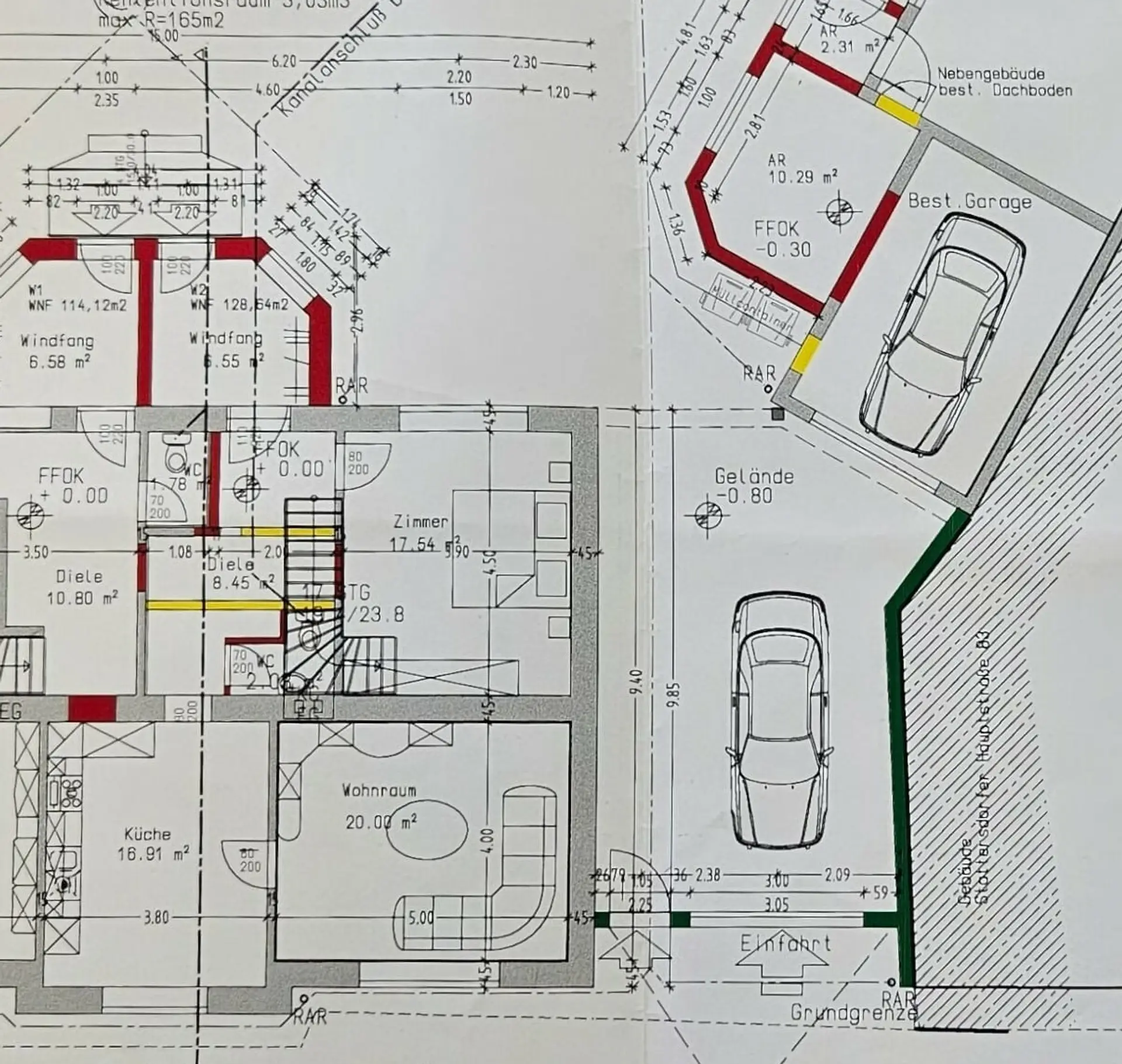 Windfang, Küche, Wohnzimmer, Gäste WC, Diele;