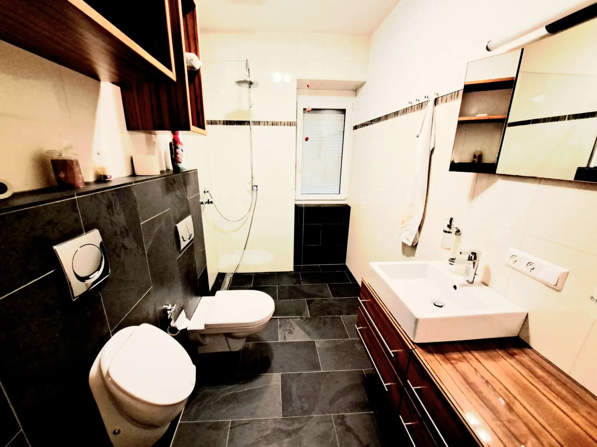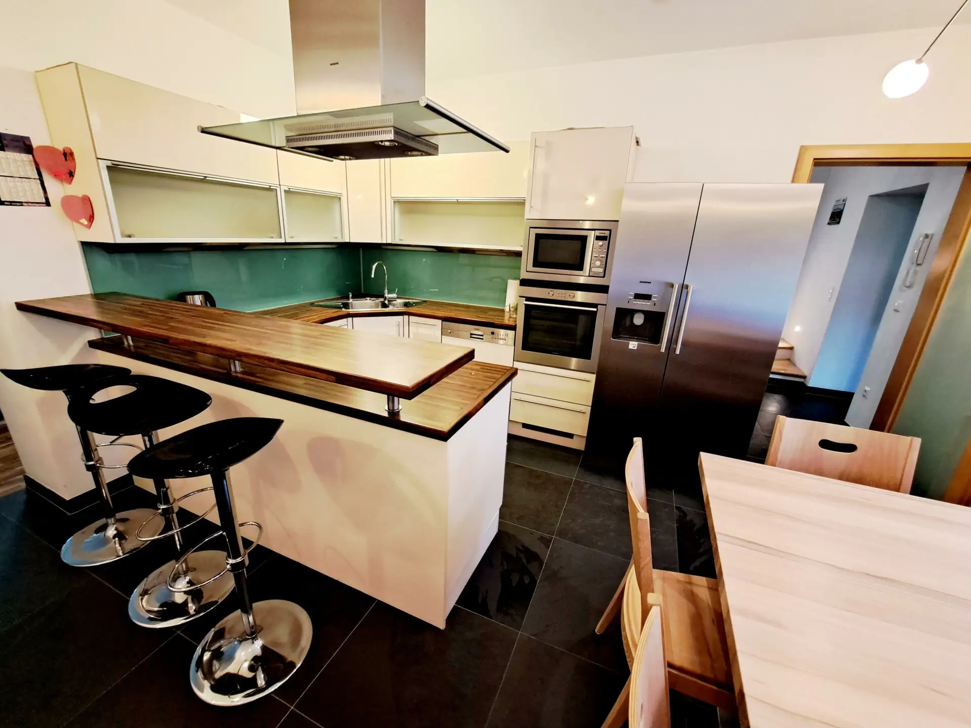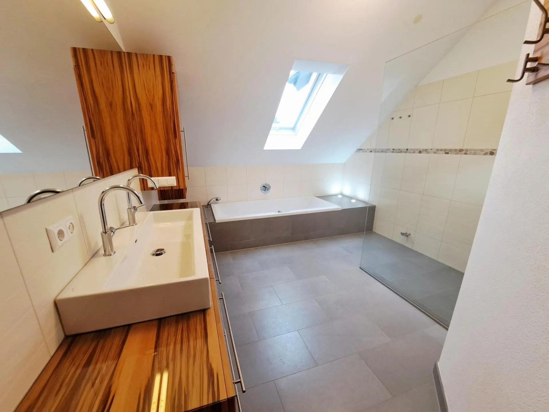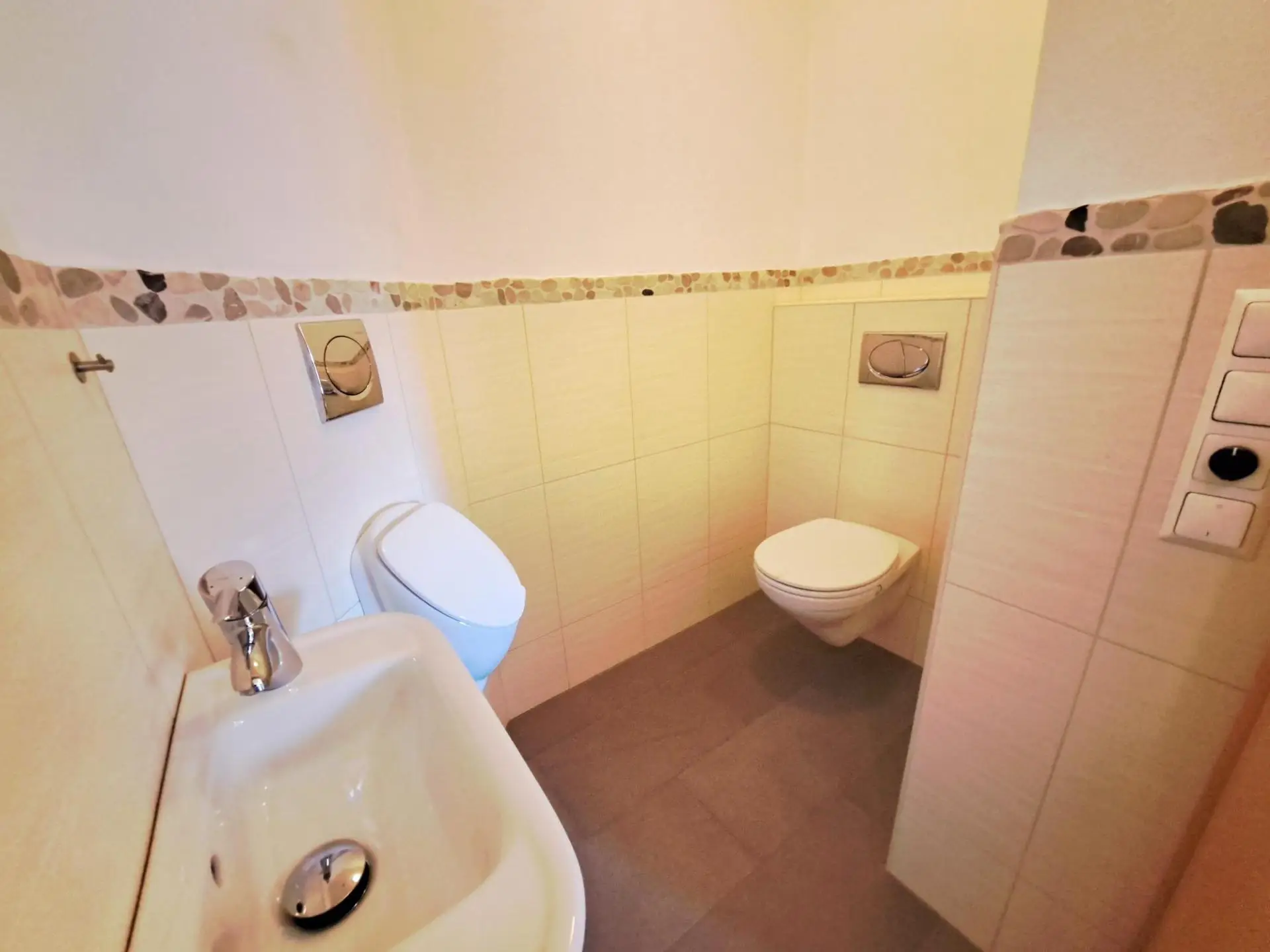 Diele, 4 Zimmer, Studio/Galerie, Badezimmer ( Duschkabine, Badewanne, Waschtisch), WC - Pissoir;