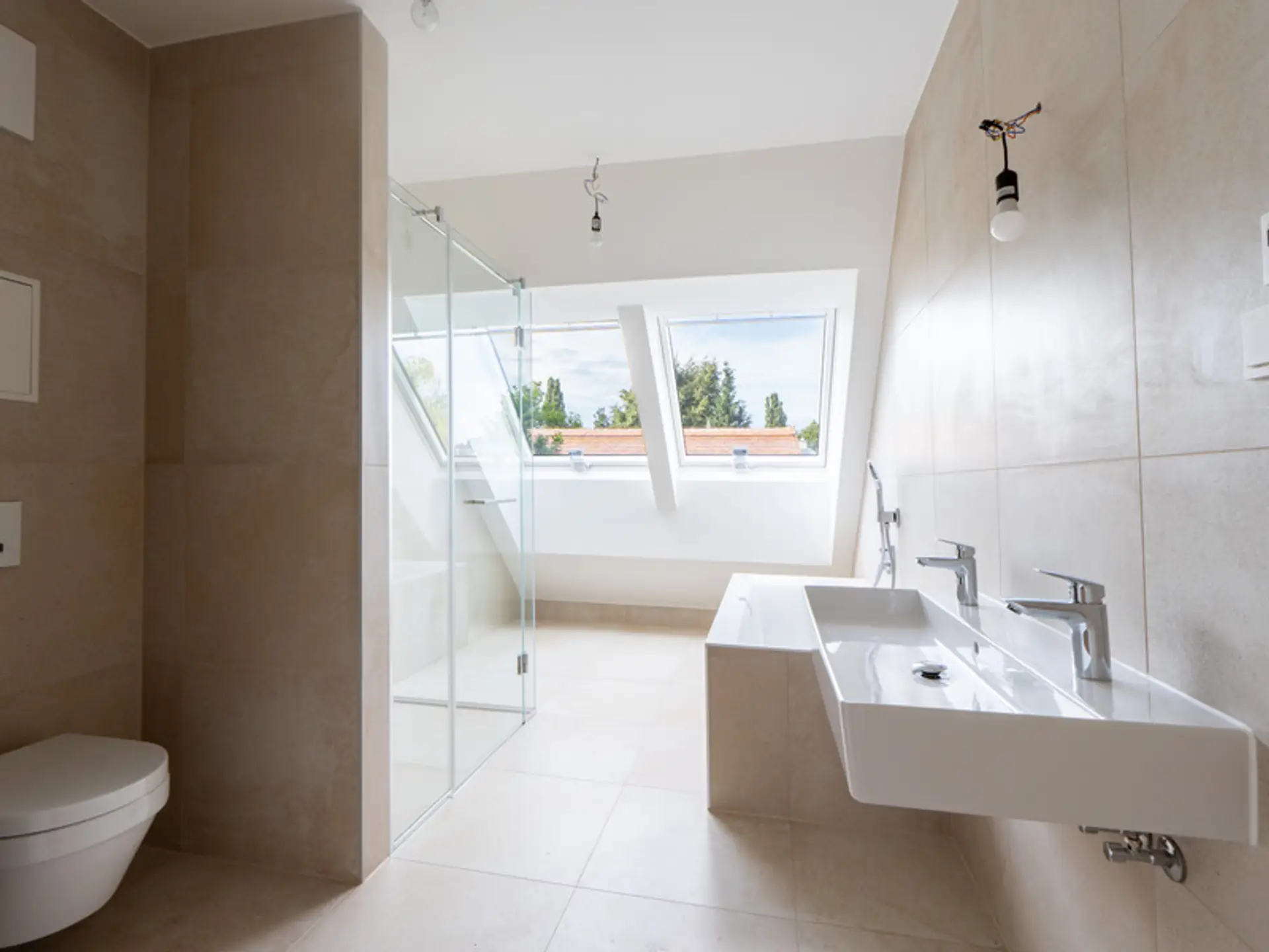 - Hochwertige Markenausstattung (Echtholzparkett, Feinsteinzeug-Fliesen, Holz-Alu-Fenster mit 3-fach Isolierverglasung, uvm.)