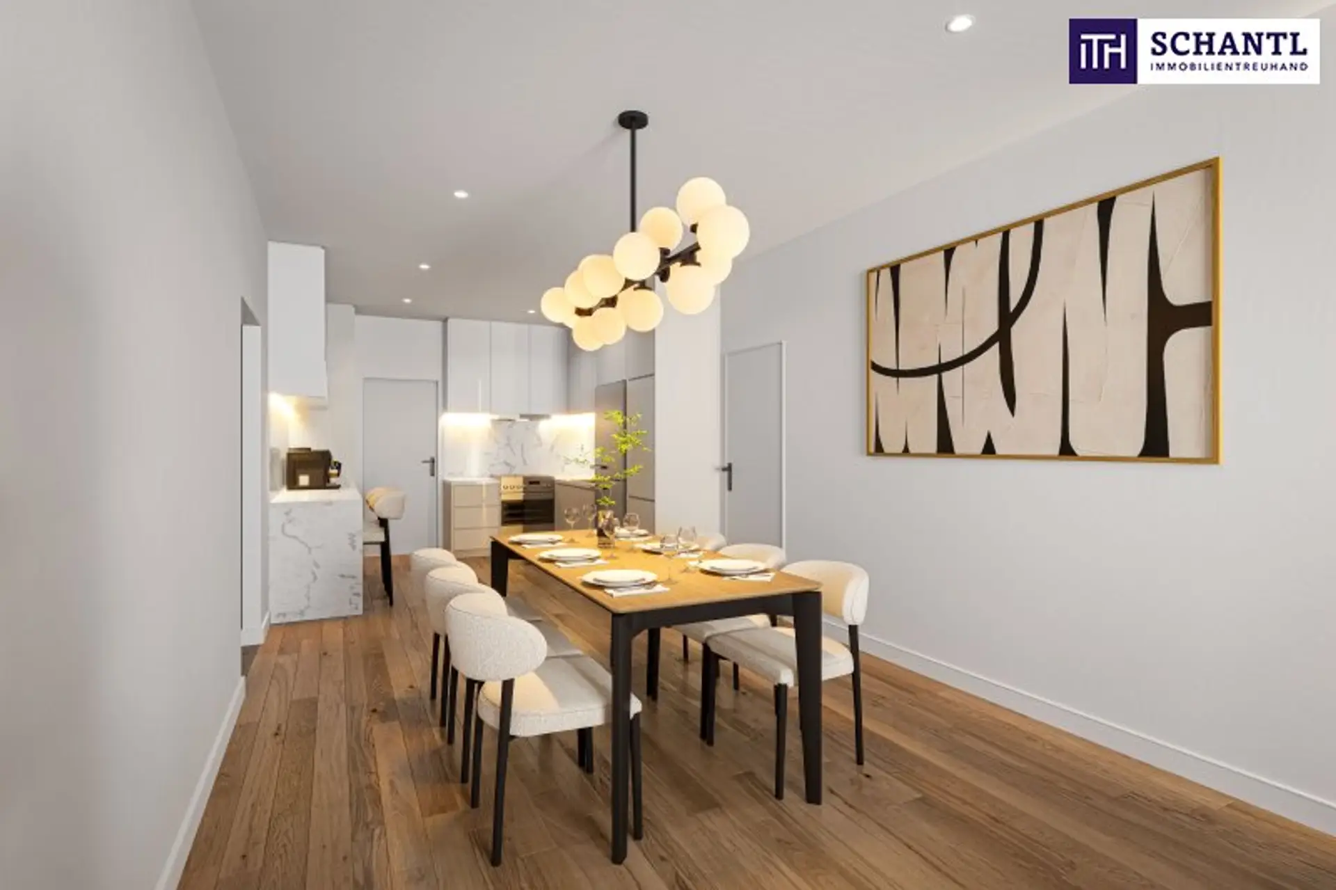 Zwei stilvolle Bäder (eines mit Badewanne, eines mit Badewanne & Dusche), ein separater Abstellraum, ein Technikraum sowie ein Vorraum mit Garderobe runden das durchdachte Raumkonzept ab.