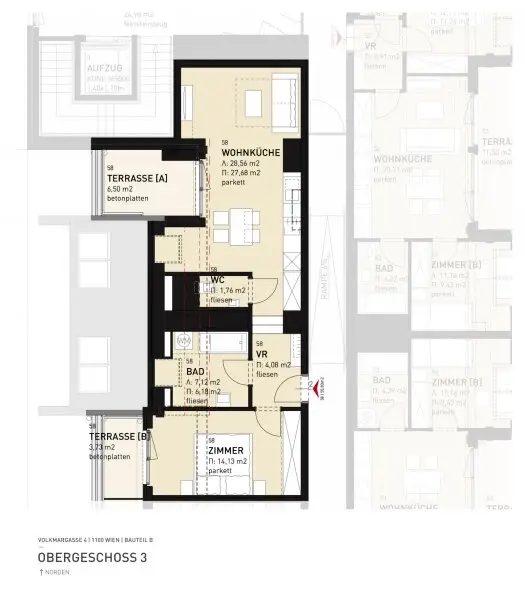 IN DER HIMBERGER STRASSE 17 ECKE OBERLAAER STRASSE/VOLKMARGASSE BEFINDEN SICH 2-3 ZIMMER WOHNUNGEN, DIE MIT 2020 FERTIGGESTELLT WURDEN UND 2 BÜROFLÄCHEN MIT JE 70M² UND 231M²