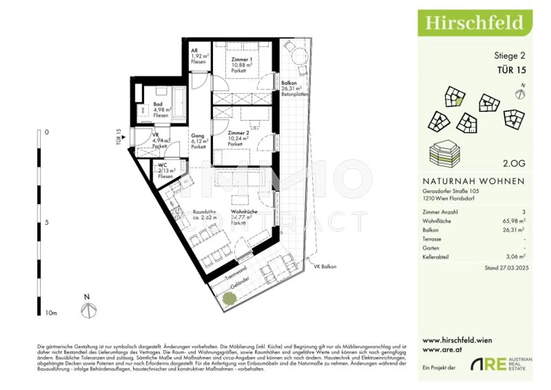 Am Rande eines weitläufigen Grünzugs, der sich bis zum Bisamberg erstreckt, entsteht im naturnahen Hirschfeld ein einzigartiges Wohnquartier: Auf drei Bauplätzen entwickelt sich ein modernes Architektur-Ensemble mit elf Gebäuden und rund 440 Wohnungen – ideal für alle, die Ruhe im Grünen mit urbaner Lebensqualität verbinden möchten.