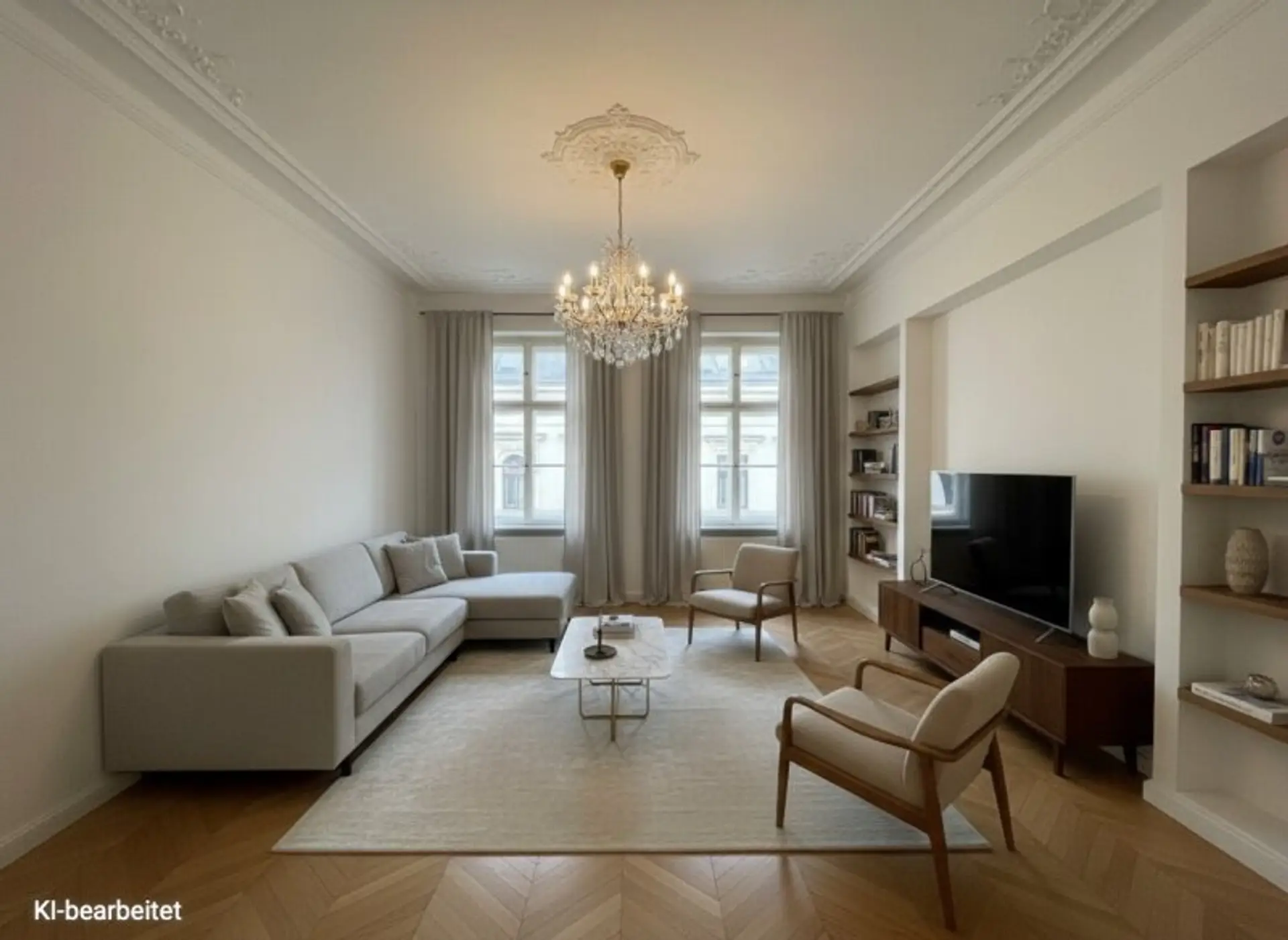Hinweis: Die dargestellten möblierten und sanierten Räume sind KI-generierte Visualisierungen und dienen lediglich der Veranschaulichung möglicher Einrichtungs- und Sanierungskonzepte. Die Möblierung und Sanierung ist nicht im Kaufpreis enthalten.