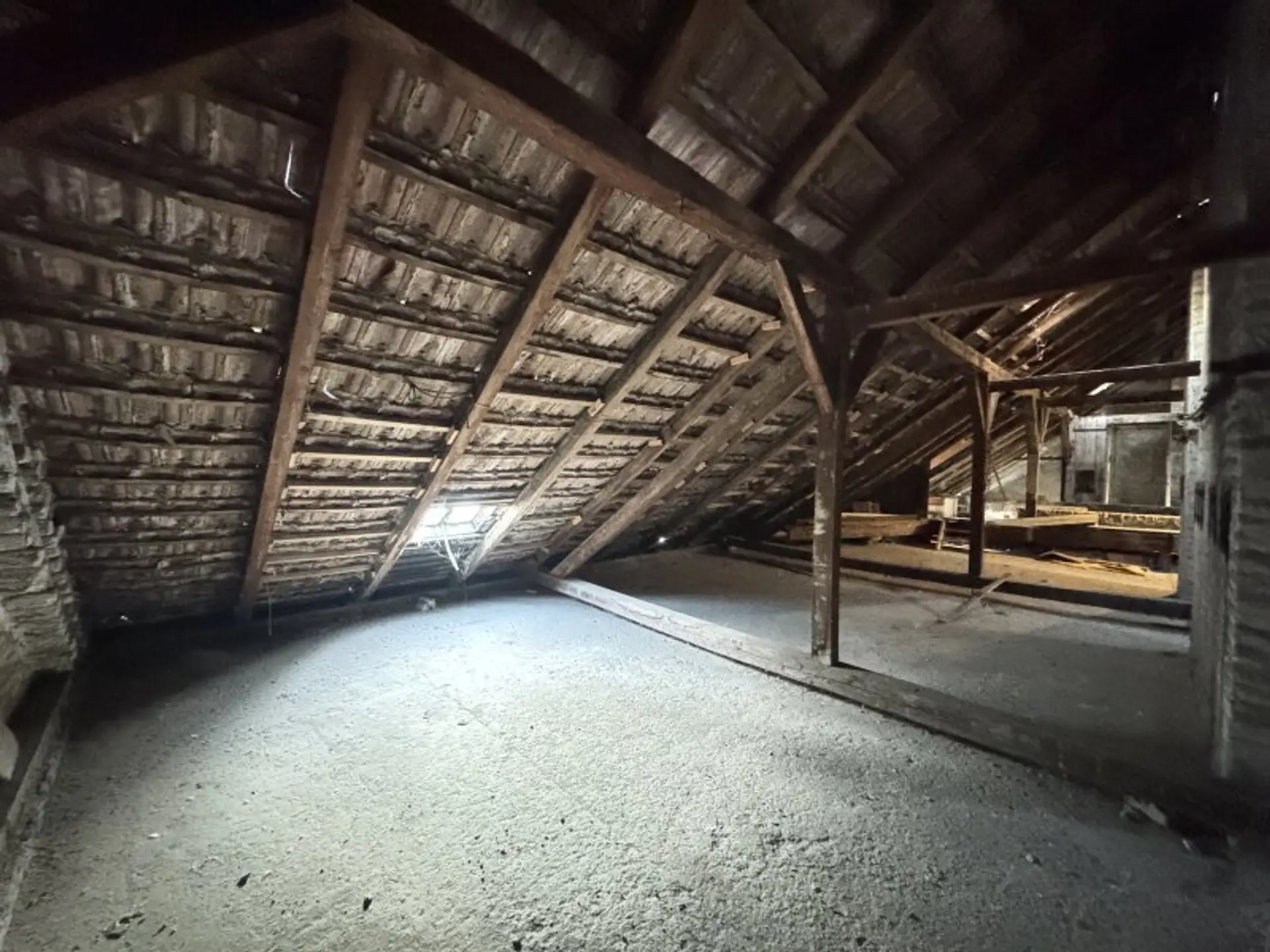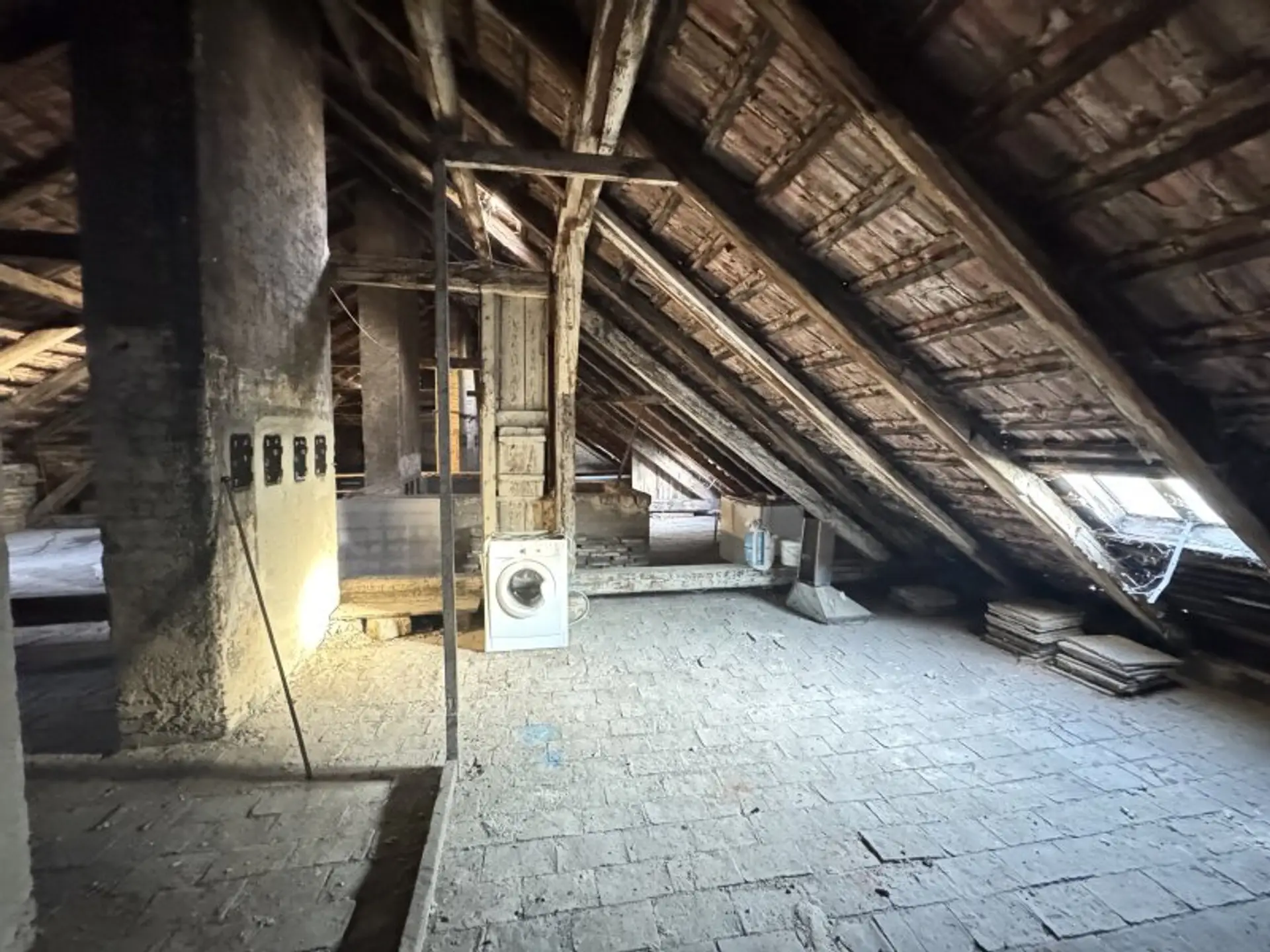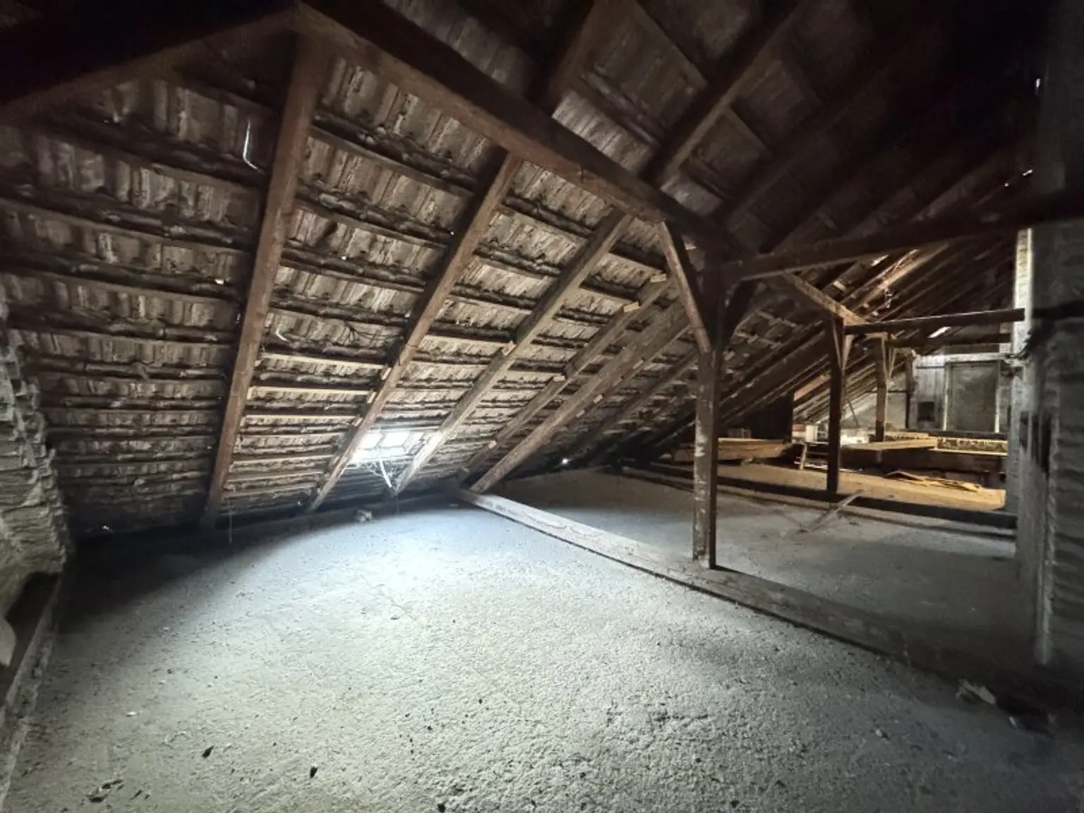 Zusätzlich zu den Wohnungen steht auch der Rohdachboden des Hauses zum Verkauf. Für diesen liegt bereits eine Ausbaustudie vor.