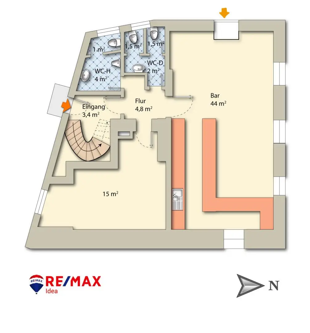 * Erdgeschoss: voll ausgestatteter Pub/bar (betrieblich nutzbar oder als Gästeräume)