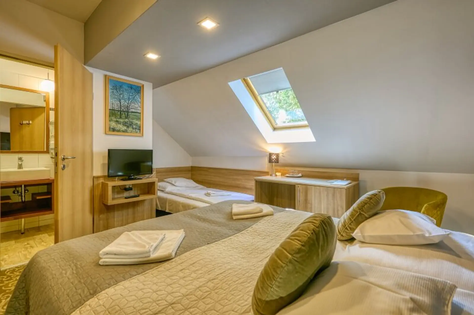 Das Hauptgebäude erstreckt sich über zwei Stockwerke und ist teilweise unterkellert. Es beherbergt elf geschmackvoll eingerichtete 4-Sterne-Zimmer, eine einladende Rezeption, Speisesaal, Gästebereiche sowie Nebenräume und ein praktisches Kellerlager.