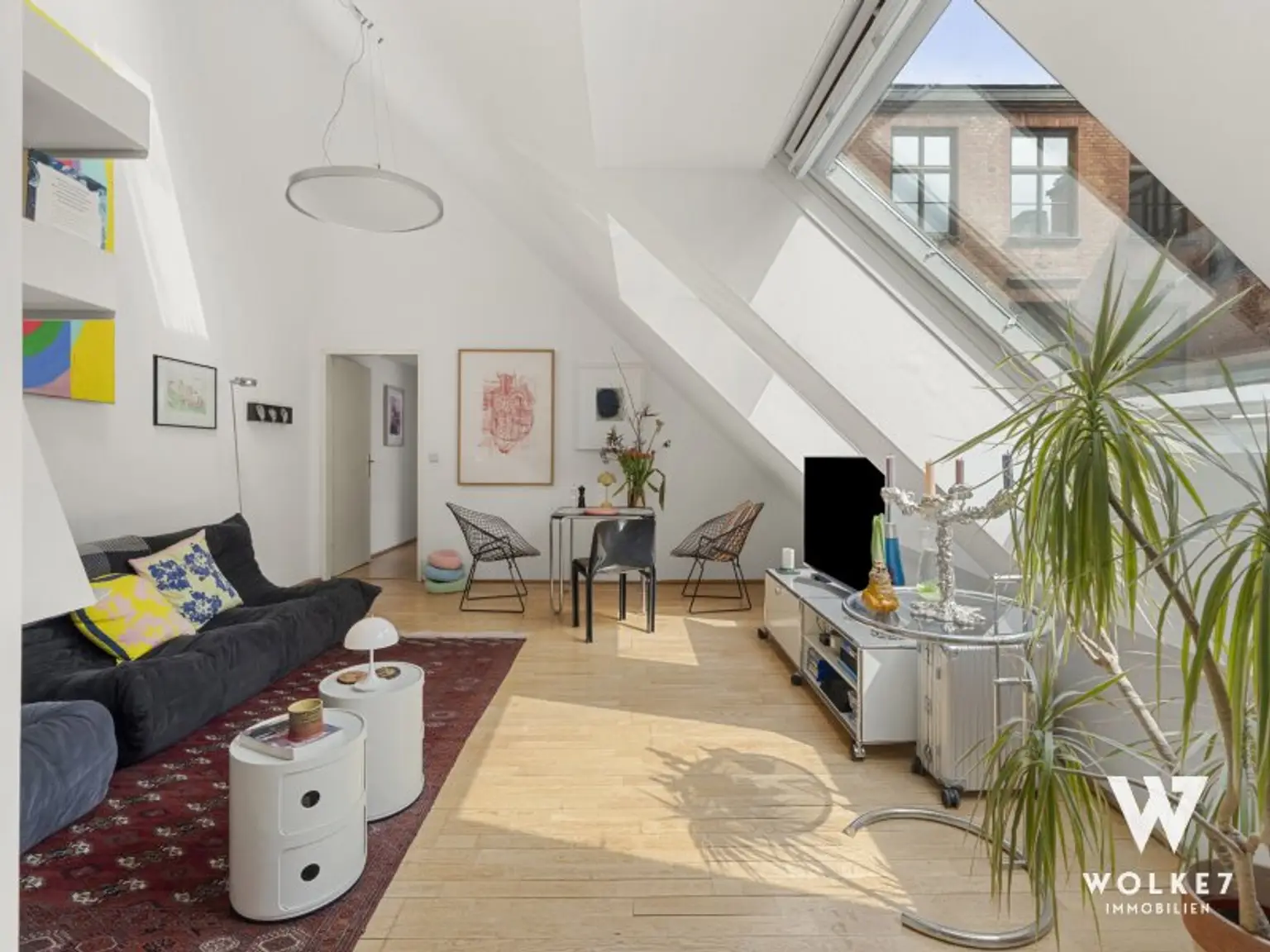 Hier erwartet Sie ein wahres Dachgeschossjuwel, das mit seiner beeindruckenden Raumhöhe von ca. 6 m sofort fasziniert und ein einzigartiges Gefühl von Weite, Offenheit und exklusivem Wohnkomfort vermittelt. Auf ca. 64,88 m² entfaltet sich eine harmonisch durchdachte Raumstruktur mit vielseitigen Nutzungsmöglichkeiten. Bereits beim Betreten empfängt Sie einer der beiden Vorräume und führt in das beeindruckende Wohnzimmer, das durch hochwertige VELUX-Holzfenster in sanftes Tageslicht getaucht wird und einen ruhigen Blick in den Innenhof eröffnet. Trotz dieser außergewöhnlichen Ruhe liegt die Wohnung nur ca. 2 Gehminuten von der pulsierenden Mariahilfer Straße entfernt. Angrenzend befindet sich die separate Küche mit Einbauküche, die ausreichend Raum für kulinarische Entfaltung bietet. Über den zweiten Vorraum erschließt sich das Badezimmer, das mit einer Badewanne sowie einem Fenster für natürliche Belüftung ausgestattet ist. Das Schlafzimmer präsentiert sich als angenehme Rückzugsoase, während das zusätzliche Kabinett mit integrierter Schlafebene vielseitige Nutzungsmöglichkeiten eröffnet: ob als weiterer Schlafbereich oder Home-Office. Die südöstliche Ausrichtung sorgt für angenehme Vormittagssonne und lichtdurchflutete Wohnräume bereits in den frühen Stunden des Tages. Abgerundet wird das besondere Wohnambiente durch die durchdachte Raumaufteilung, edlen Parkettboden sowie die ruhige Innenhoflage.